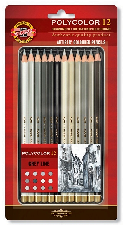 KREDKI OŁÓWKOWE POLYCOLOR 3822 12KOL. SZAROŚĆ LINI