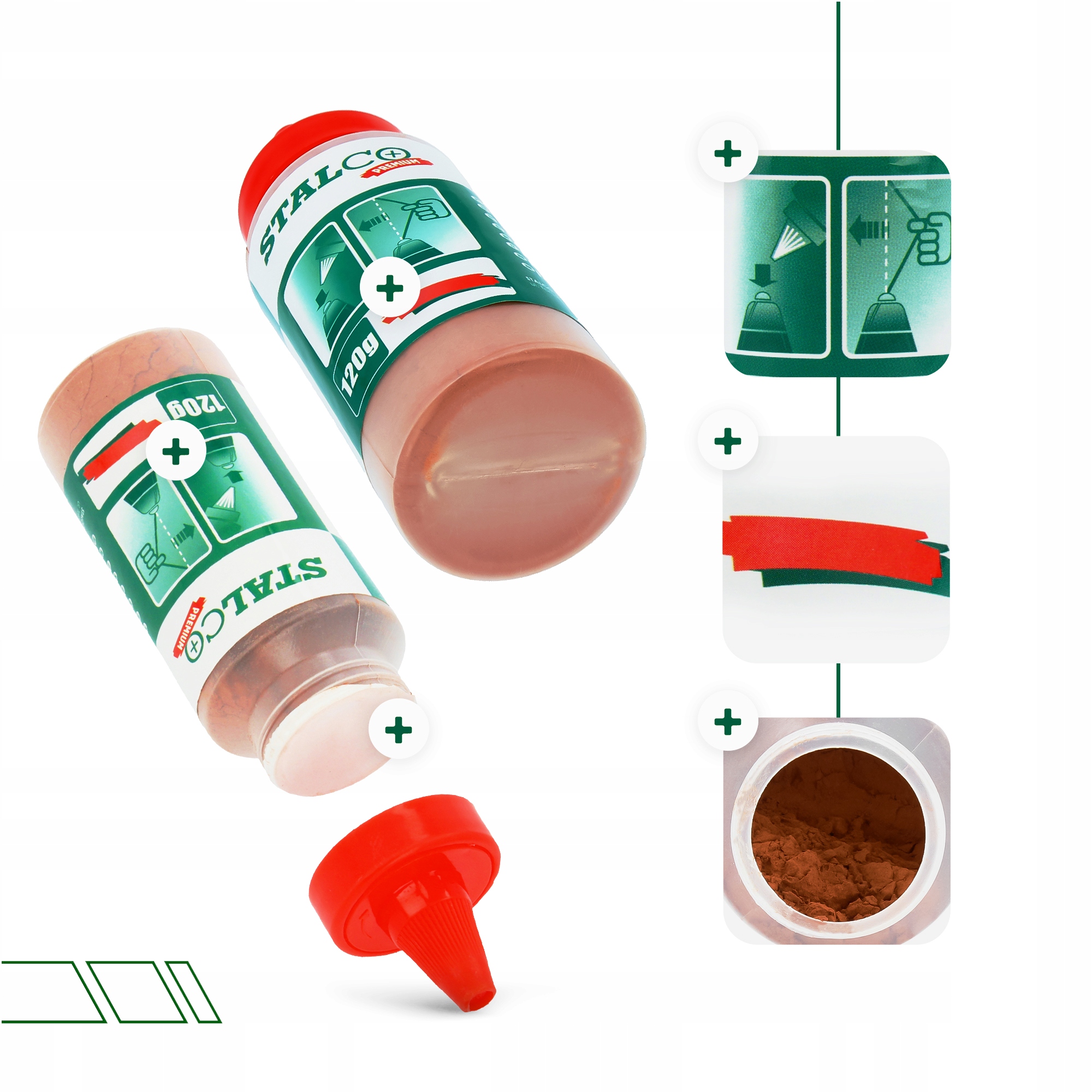 Флакон с точным аппликатором позволяет удобно засыпать мел в разметочную мерку. При использовании с маркировочным шнуром мел позволяет рисовать длинные линии на бетоне, дереве и других строительных материалах.