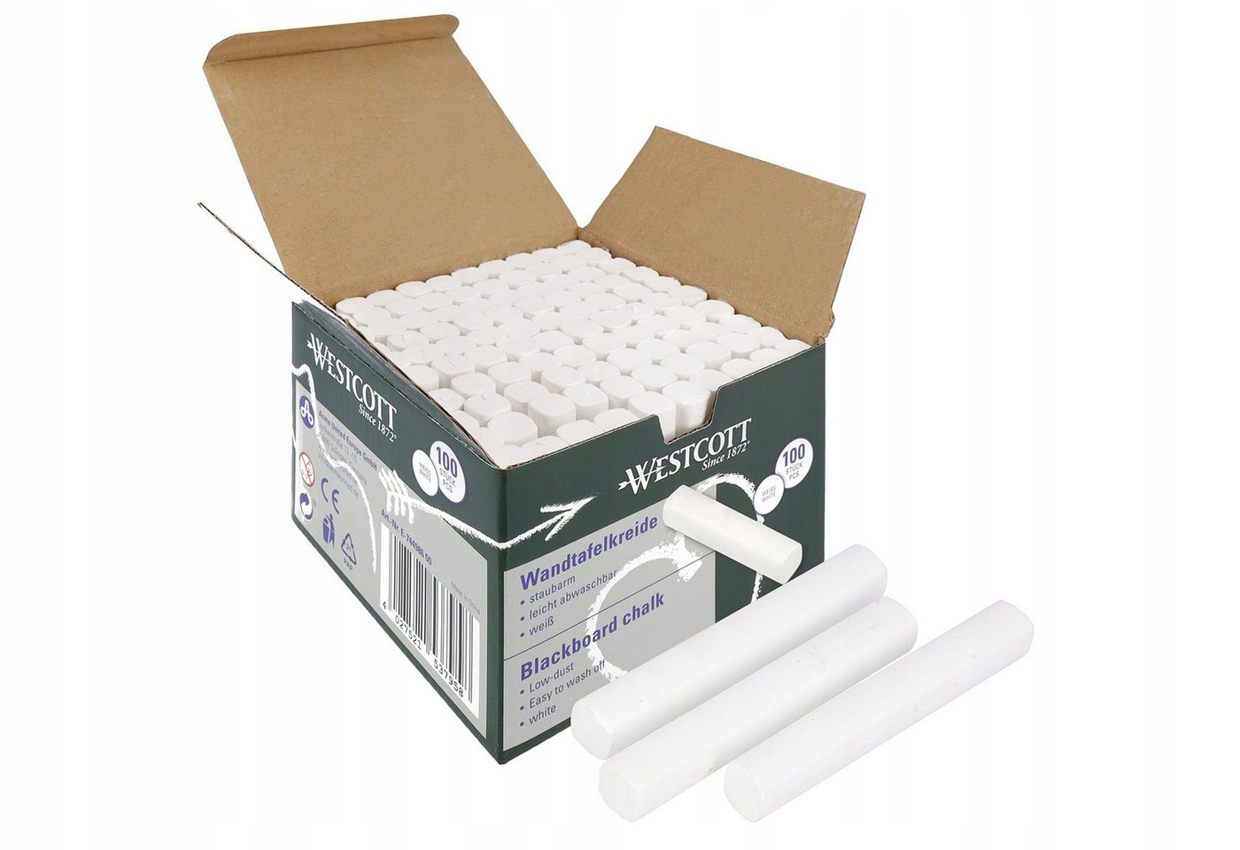 Мел WESTCOTT 100 шт белый, экономичная упаковка, мел для доски 1,2