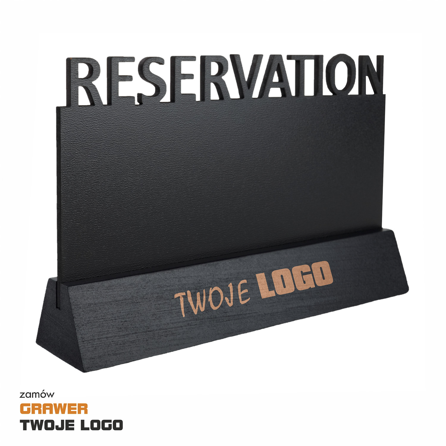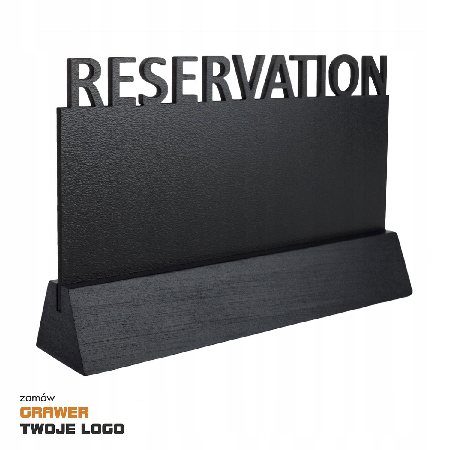 Односторонняя доска с вырезанным словом БРОНИРОВАНИЕ. Табличка имеет коническую деревянную основу, окрашенную в черный цвет и покрытую лаком. На стенде может быть выгравирован логотип, название компании или реклама. На доске можно писать мелом или маркером. Идеально подходит для обозначения зарезервированного места в ресторане, кафе, кондитерской, пабе, баре или отеле. Благодаря оригинальности формы он является украшением любого интерьера.