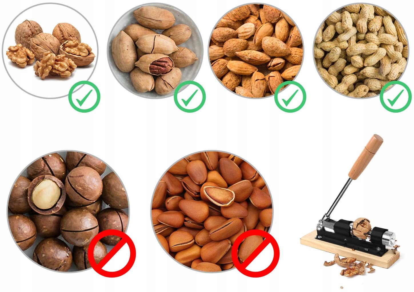 - Снимает скорлупу, не повреждая орех.