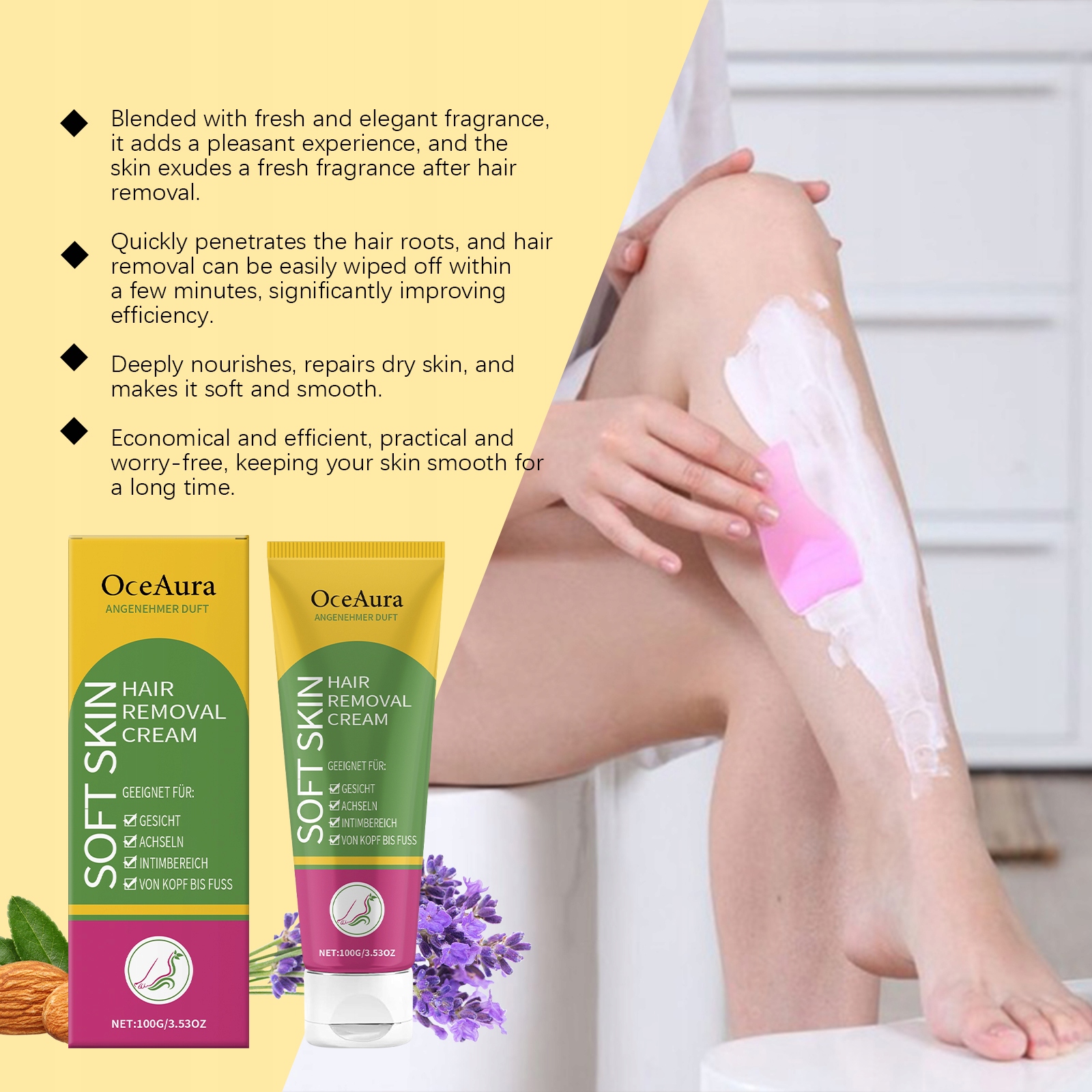 Крем для депиляции oceur предлагает нежное и эффективное решение для гладкой кожи без волос с головы до ног. Насыщенный приятным запахом, этот крем был специально разработан для удаления нежелательных волос без усилий, оставляя кожу мягкой и питательной.