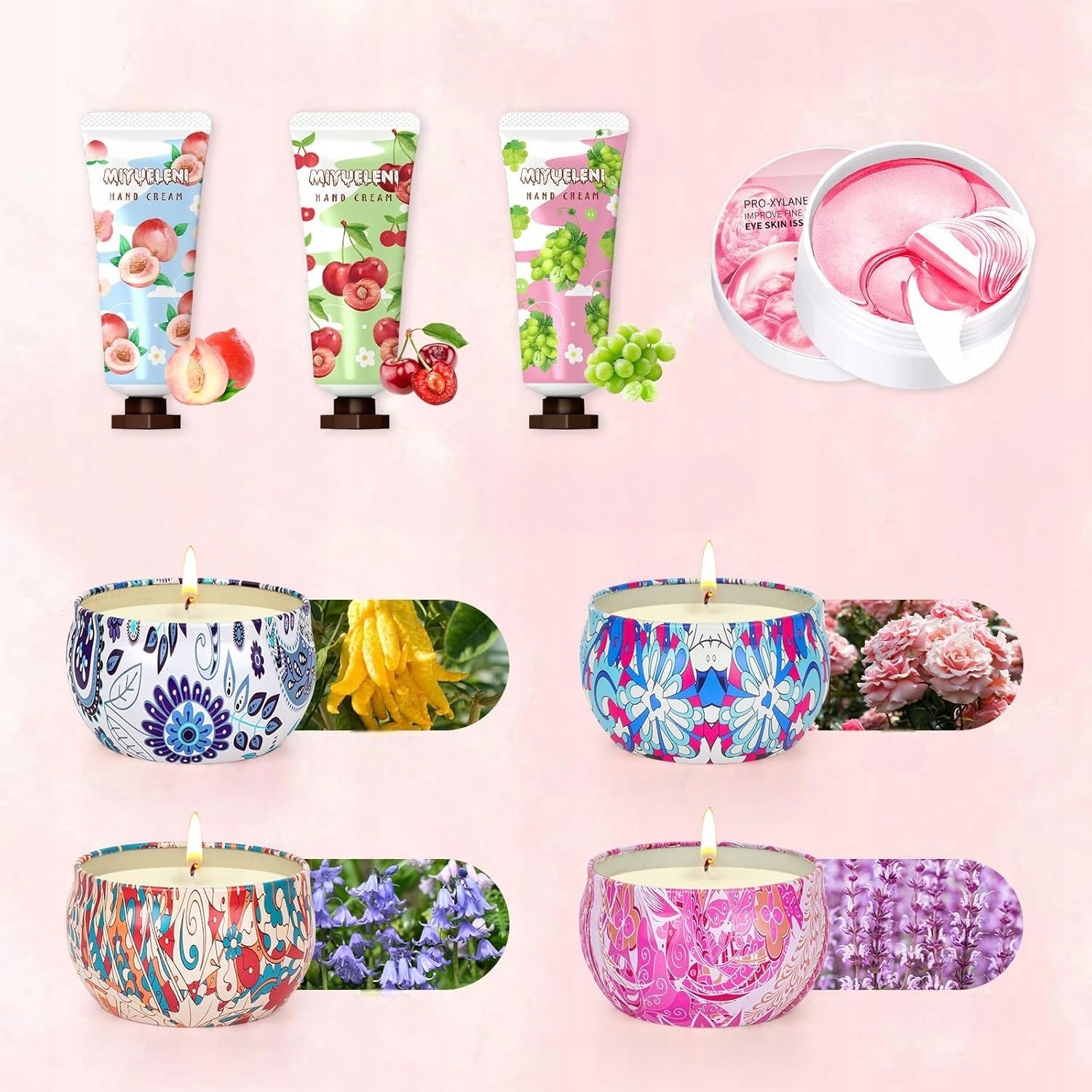 ✔️Это роскошная композиция: мини-кремы для рук, ароматические свечи в стаканах и повязки для глаз - идеальный подарок на Рождество, День святого Валентина, День матери, дни рождения и другие праздники.