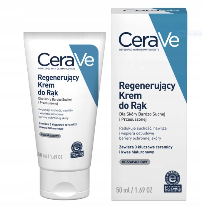 Разработанный в сотрудничестве с дерматологами регенерирующий крем для рук с керамидами. Увлажняет и поддерживает восстановление защитного барьера кожи. Содержит 3 ключевых керамида и гиалуроновую кислоту. Подходит для взрослых и детей от 3 лет. Без запаха. Доступен в следующем формате: 50 мл CERAVE представляет собой композицию трех церамидов со структурой, идентичной церамидам, содержащимся в коже: церамид 1, церамид 3, церамид 6-II, а также холестерин, жирные кислоты и фитосфингозин. Эти ингредиенты оказывают синергетическое действие на восстановление защитного барьера кожи. (MVE) (технология мультивезикулярной эмульсии) обеспечивает стабильное высвобождение активных ингредиентов с течением времени, включая незаменимые керамиды, помогая восстановить защитный барьер кожи, благодаря чему она дольше остается увлажненной.
