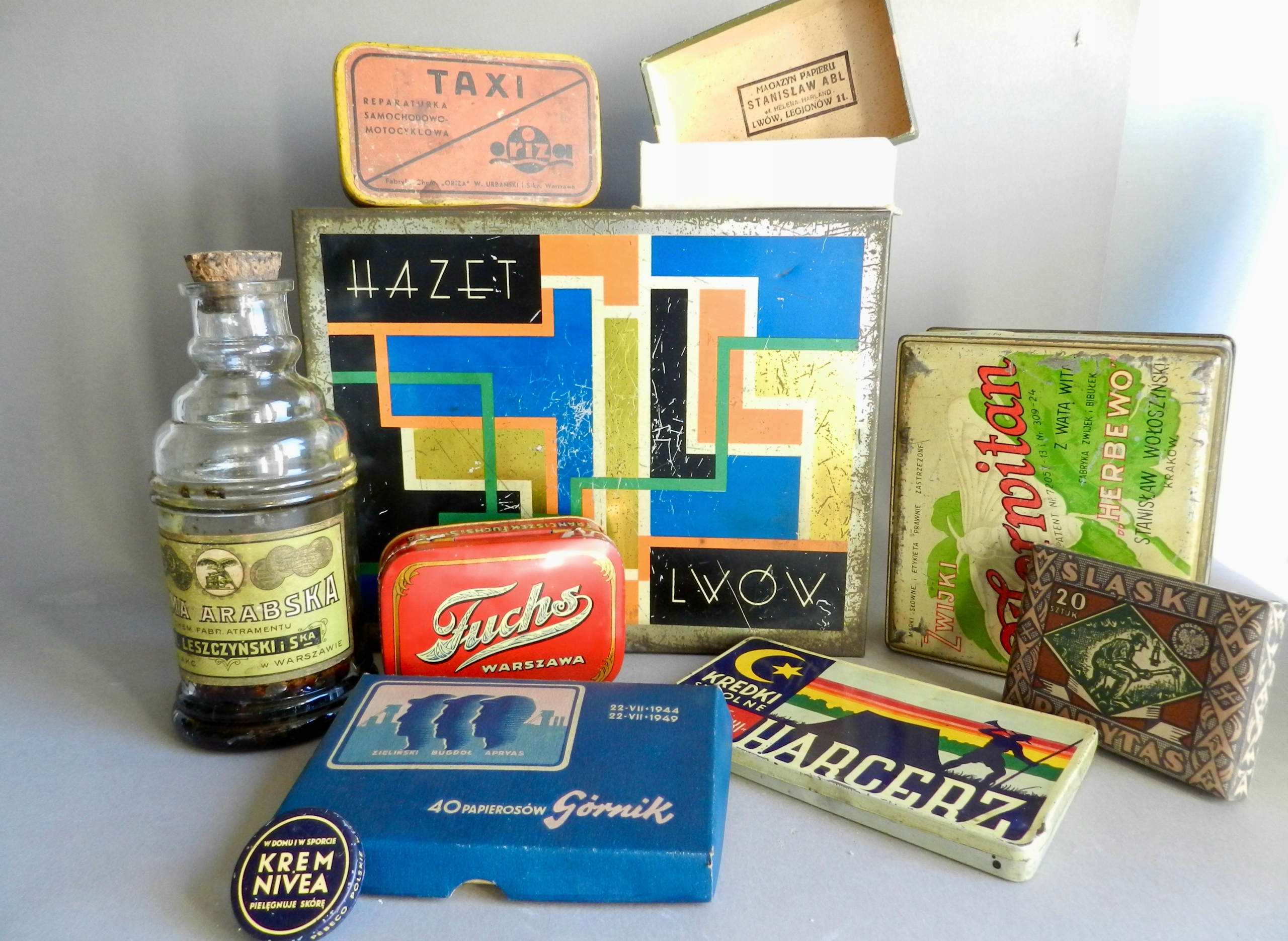 коробка 30 -х годов. Наконец, сохранился в очень хорошем состоянии. Минимальные металлические зубцы. Все субтитры разборчивы. На окраине крышки надпись: Pebeco Polskie Products Beiersdorfa sp. AKC. В Poznań № 361