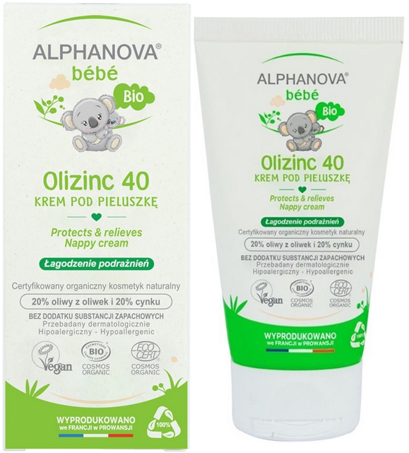 OLIZINC 40 серия ALPHANOVA bebe – натуральная дерматологическая мазь нового поколения. Произведено с использованием небольшого количества ингредиентов и не содержит искусственных консервантов. Продукт ориентирован на эффективность за счет сочетания 20% микронизированного цинка и 20% органического оливкового масла. Используйте профилактически, а также при повреждениях кожи или покраснениях на попе ребенка.
