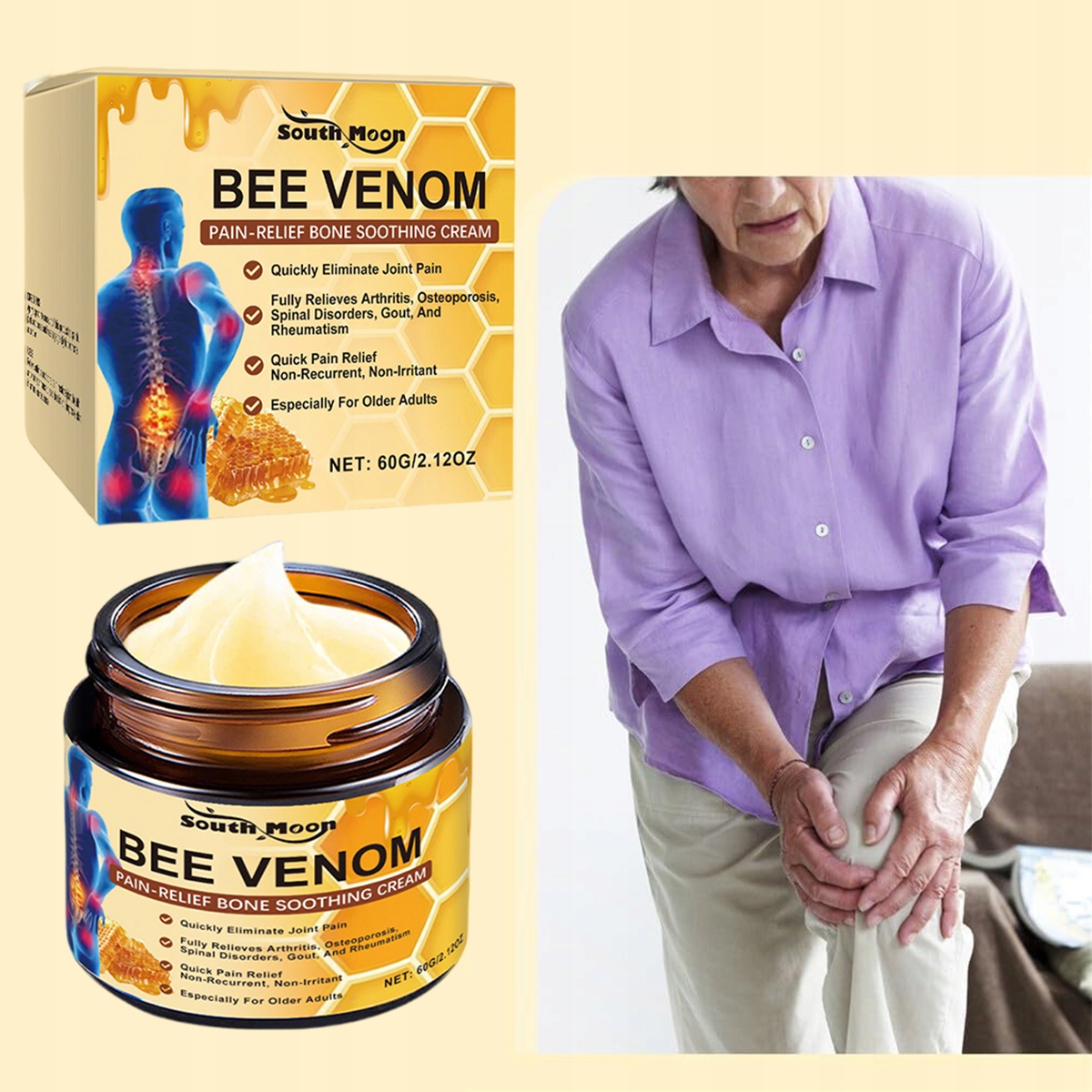 2 шт. крем с пчелиным ядом, усовершенствованный крем с пчелиным ядом для суставов и костей 60 г, крем для суставов с пчелиным ядом, продвинутый профессиональный новый профессиональный крем с пчелиным ядом, для спины, шеи, рук, колен