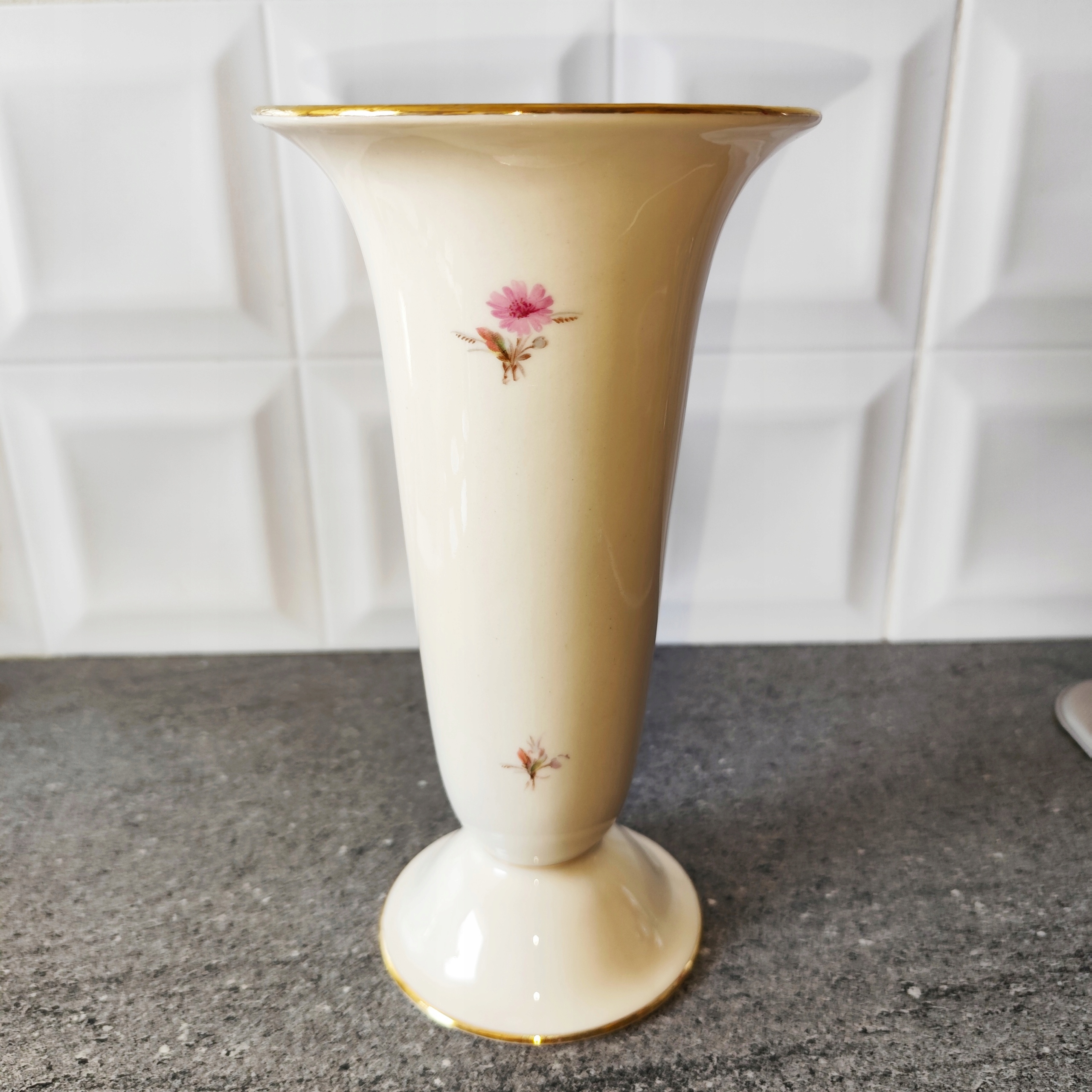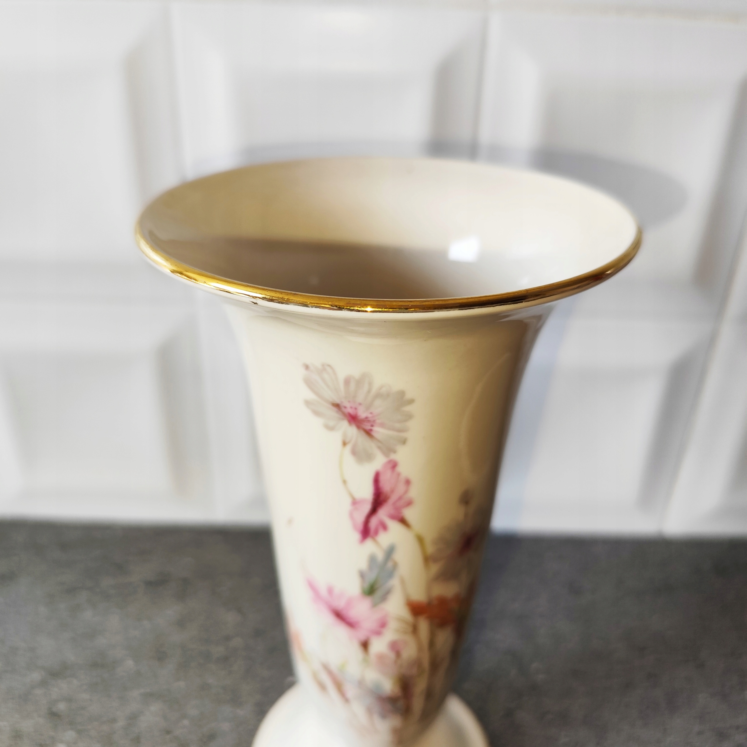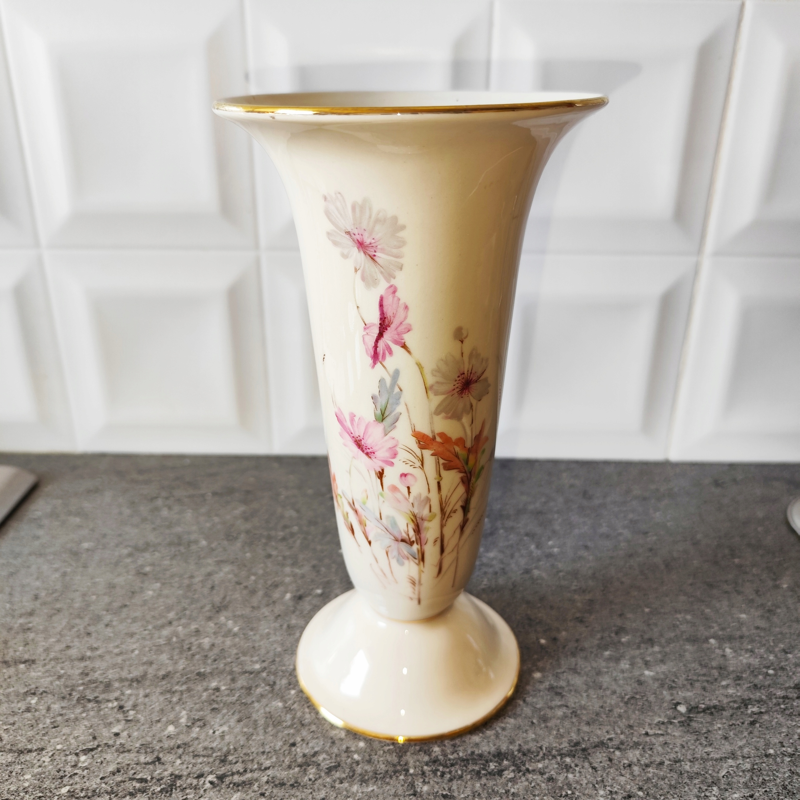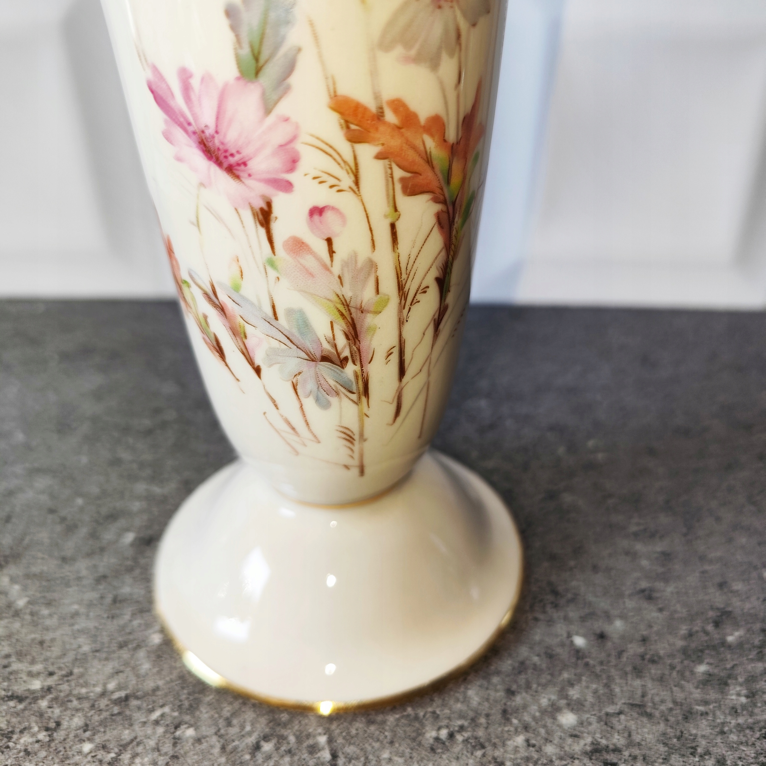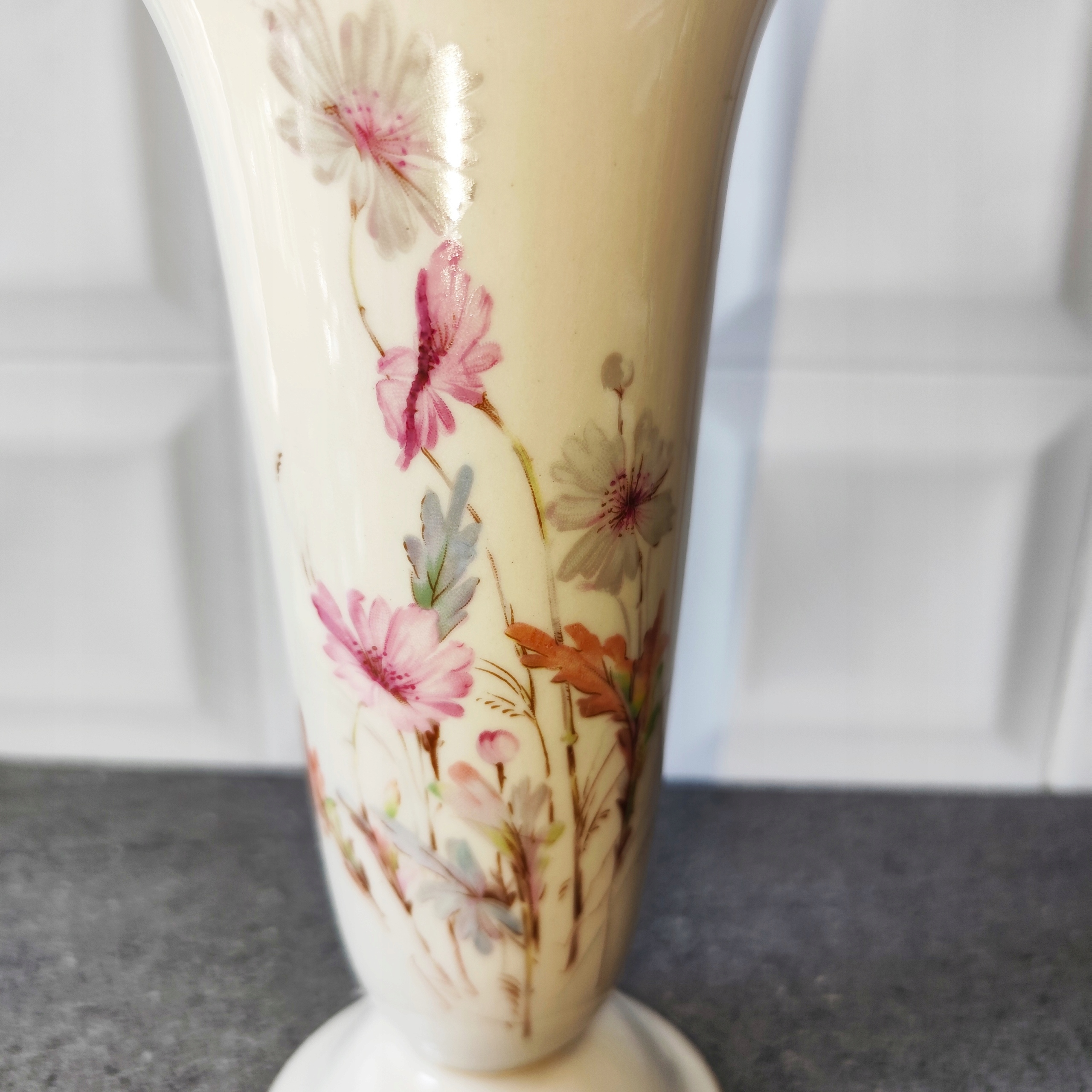 Кремовая фарфоровая ваза с цветами, подпись Бавария, старинный фарфор