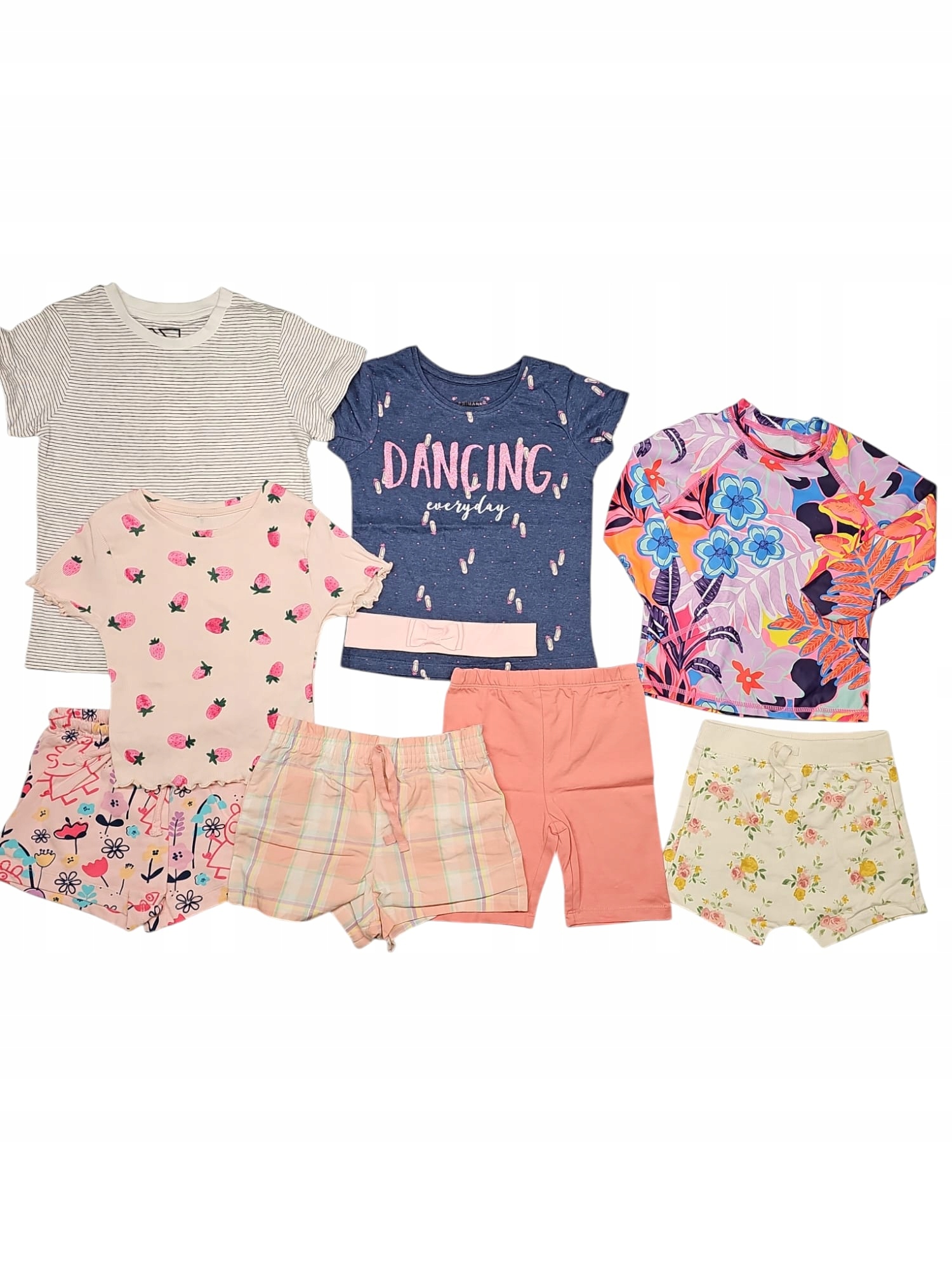 Ассортимент:платья, юбки, блузки, футболки, боди, шапки, брюки, шорты, комбинезоны, рубашки, купальники, кепки