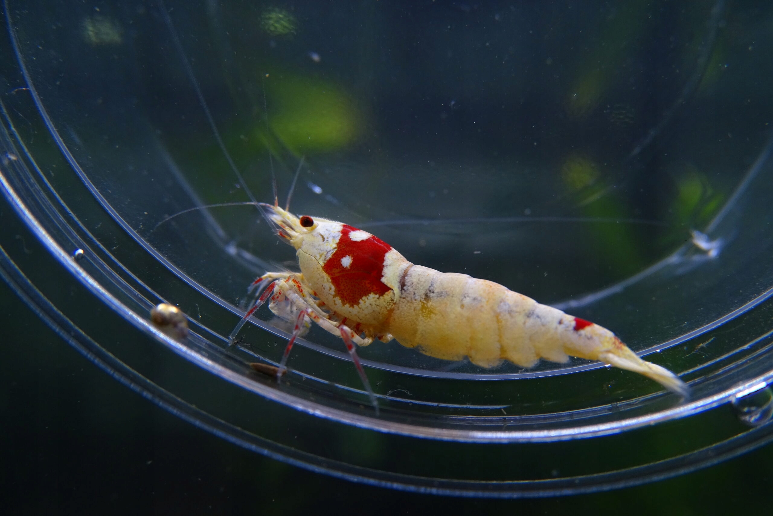Описание: белые и красные креветки. В зависимости от градации количество белого цвета больше или меньше. В более высоких градатах креветки имеют белый живот, а красное появляется только на «головке». Креветки PRL характеризуются чистотой линии, то есть потомство креветок на 100% белого и красного хрустале. Интенсивные белые креветки.