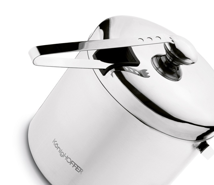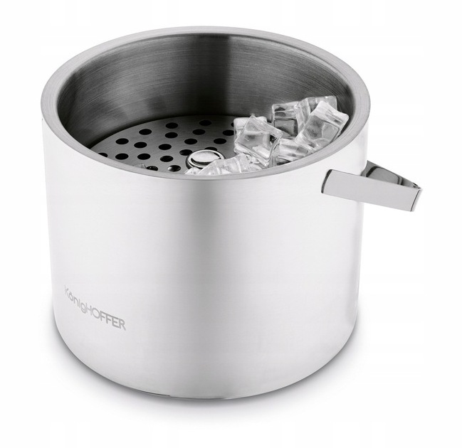 Ведерко для льда Konighoffer Lugo объемом 3 л с щипцами изготовлено из нержавеющей стали. В его размер поместится, например, классическая бутылка спиртного. Идеально подходит для вечеринки. Вы можете использовать его, чтобы предоставить гостям кубики льда для напитков. Благодаря металлической ручке ведро со льдом можно безопасно переносить. Модель большая, прочная, хорошо выдерживает эксплуатацию и влагу. Он подойдет, в том числе: как часть романтического вечера с вином или шампанским. Он также имеет структуру, обеспечивающую вакуумную термоизоляцию содержимого. Щипцы, входящие в комплект, облегчают укладку кубиков. Их можно спрятать в крышку.