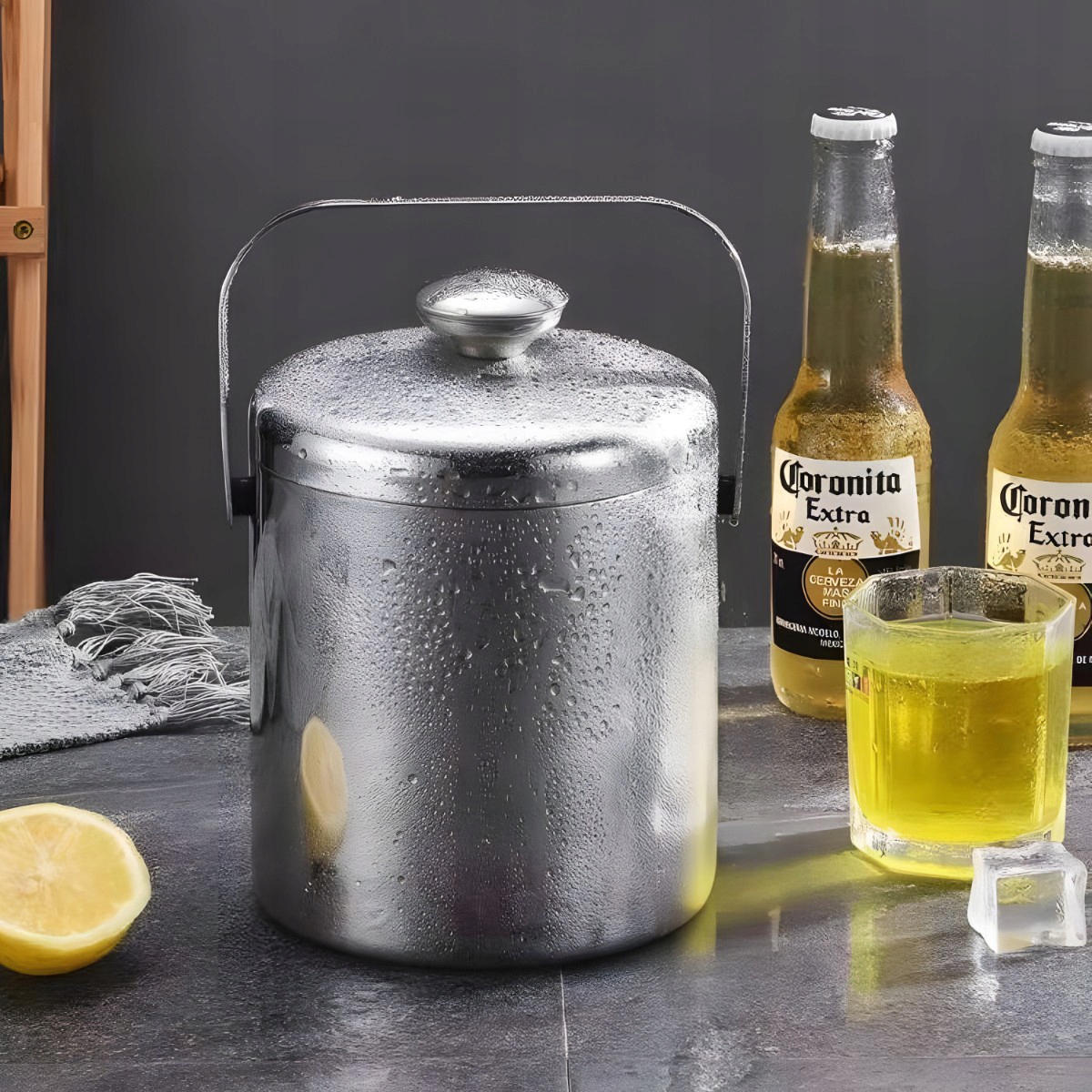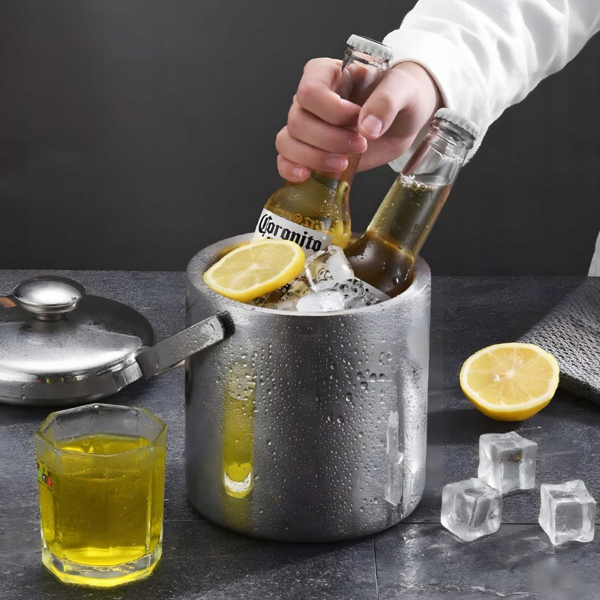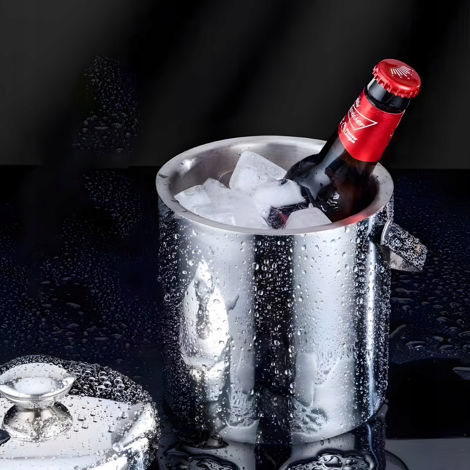 Ледяное ведро с элегантным дизайном, идеально подходит для охлаждения напитков во время общественных собраний. Сделанный из высококачественной нержавеющей стали, сохраняет лед в течение долгого времени, и вы можете наслаждаться блаженным спокойствием с холодным напитком в руке