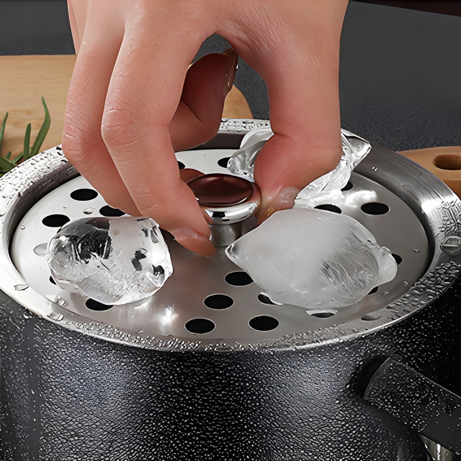 Ковкость со льдом оснащено функциональным ситом, которое отделяет лед от накопленной воды, сохраняя его сухим и готовым к использованию в течение длительного времени. благодаря ситечке, лед не тает так же быстро, что делает напитки прохладными и освежающими