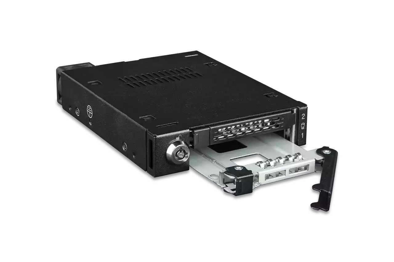 Чтобы получить дополнительный уровень физической безопасности, корпус имеет ключевое закрытие. Эта система защищает от нежелательного доступа и защищает диски в сложных условиях.