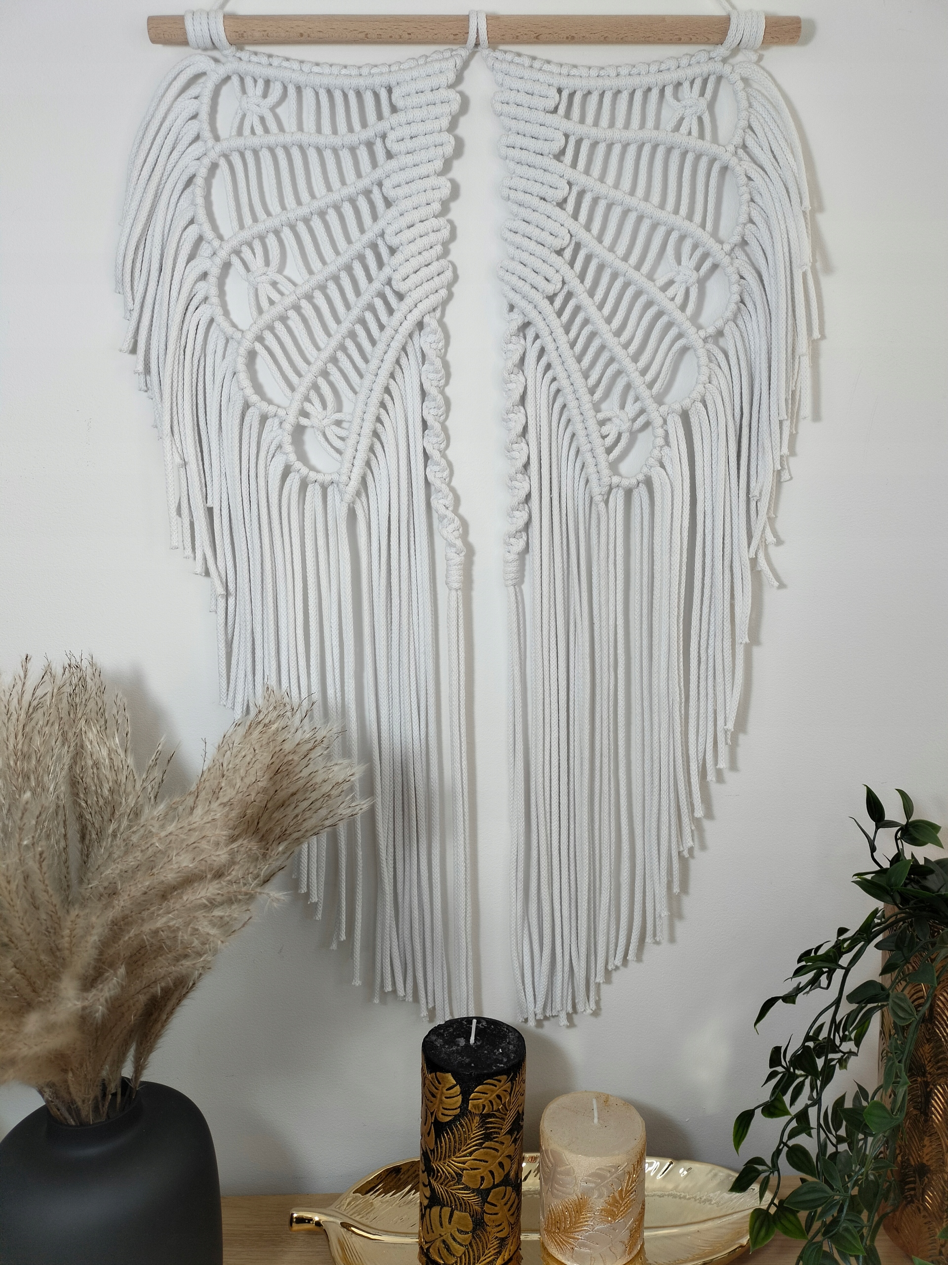 Macrama Wings большой белый 70 x 40 Boho ловец