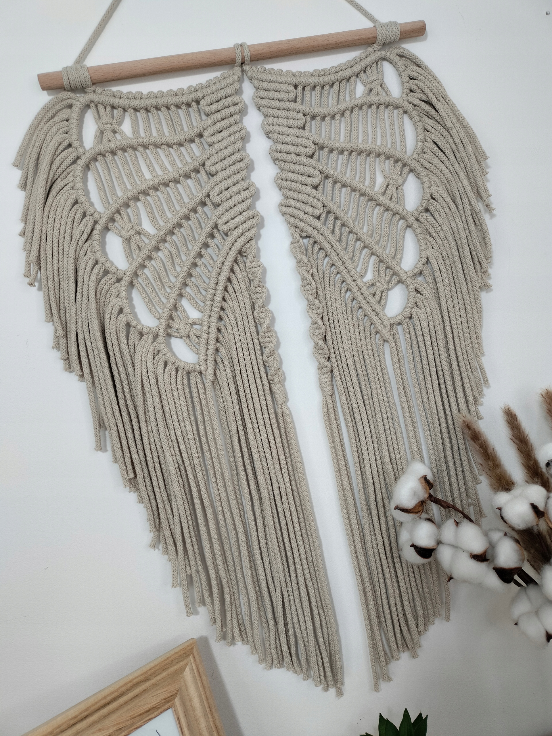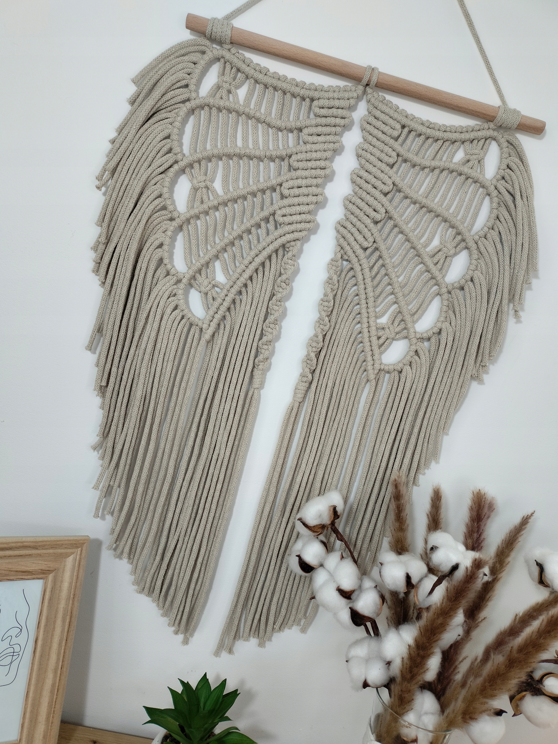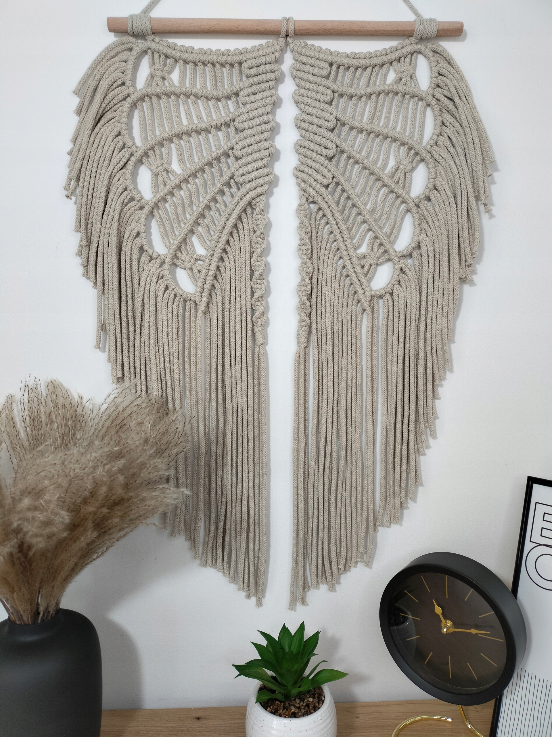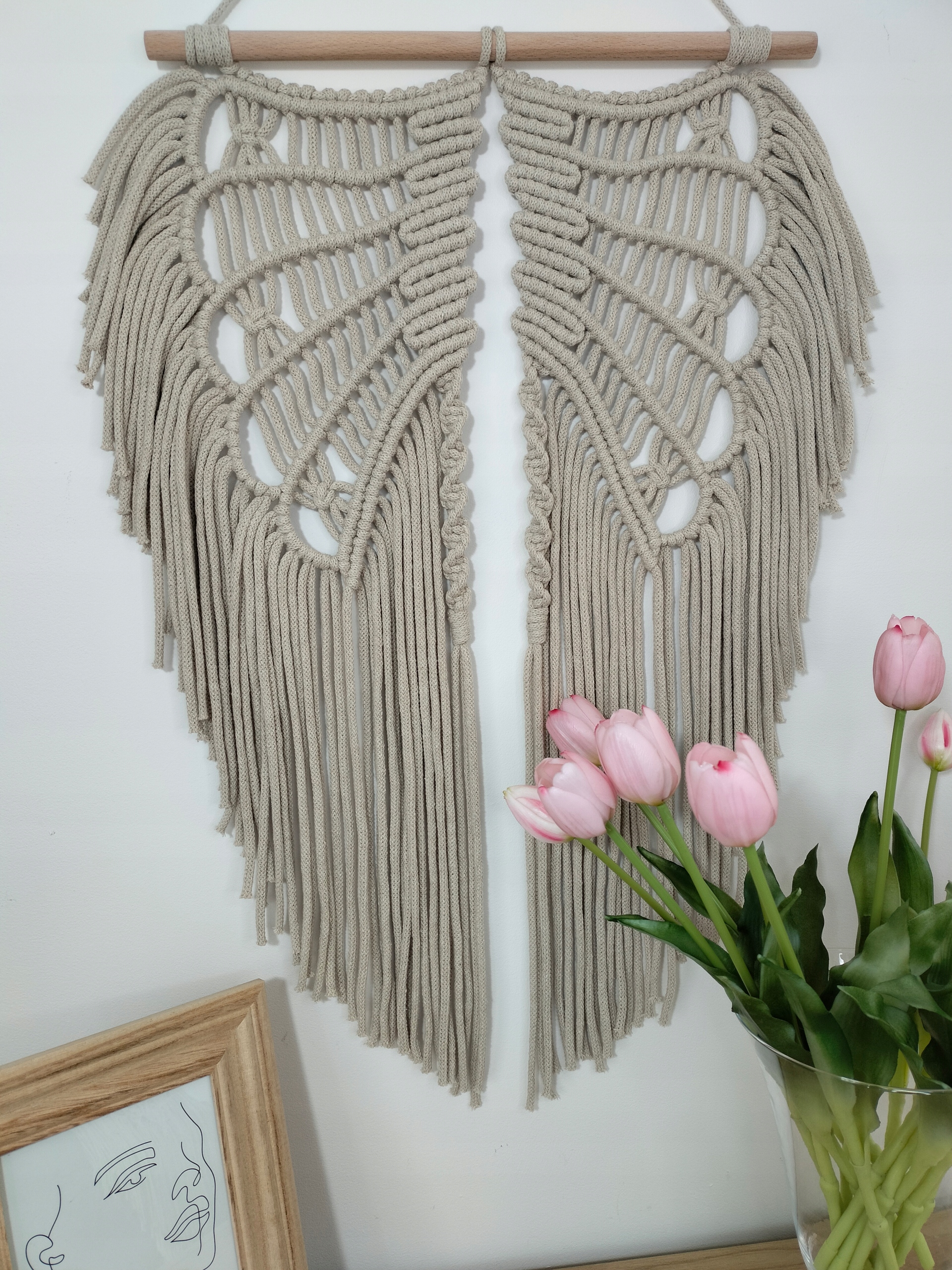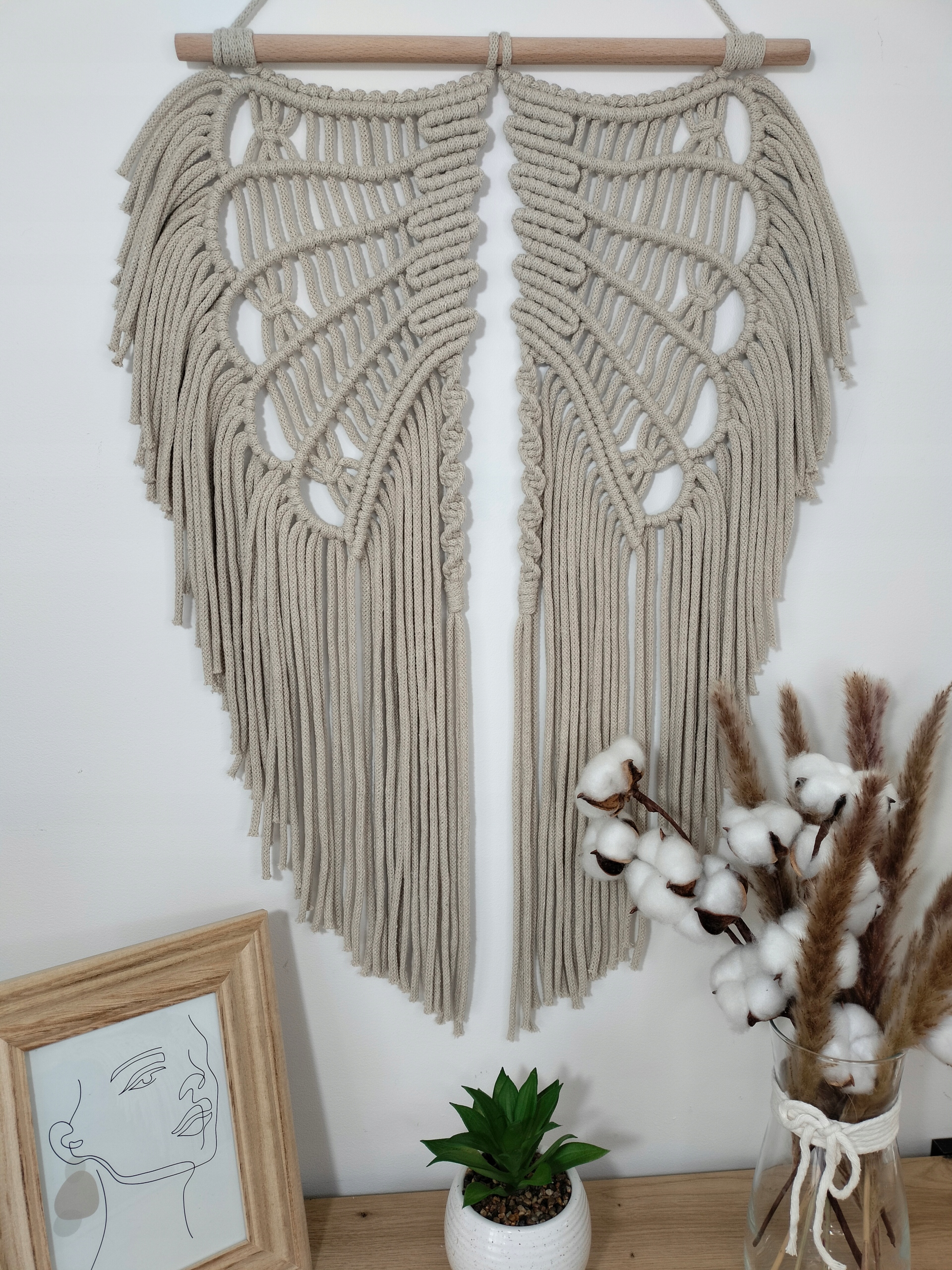 Макрама крылья большие на стене 70 x 40 Бохо бежевый