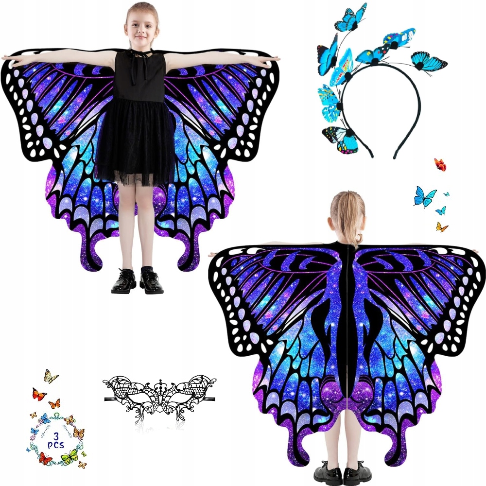 КРЫЛЬЯ БАБОЧКИ ДЛЯ ДЕВОЧЕК С ПОВЯЗКОЙ ДЛЯ ВОЛОС БАБОЧКИ И КРУЖЕВНОЙ МАСКОЙ ДЛЯ КОСПЛЕЯ И ХЭЛЛОУИНА