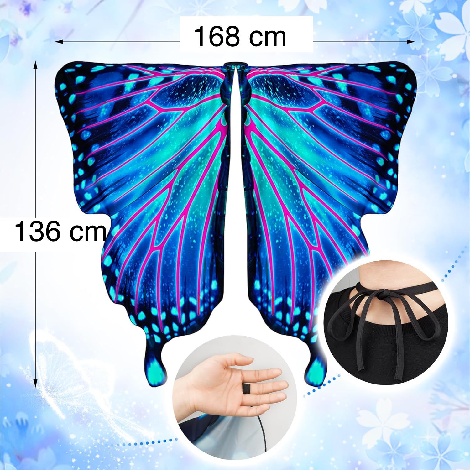 ✅ Косплей «Крылья бабочки» для взрослых и молодежи + повязка на голову + маска + 2 заколки для волос – накидка 135х168 см