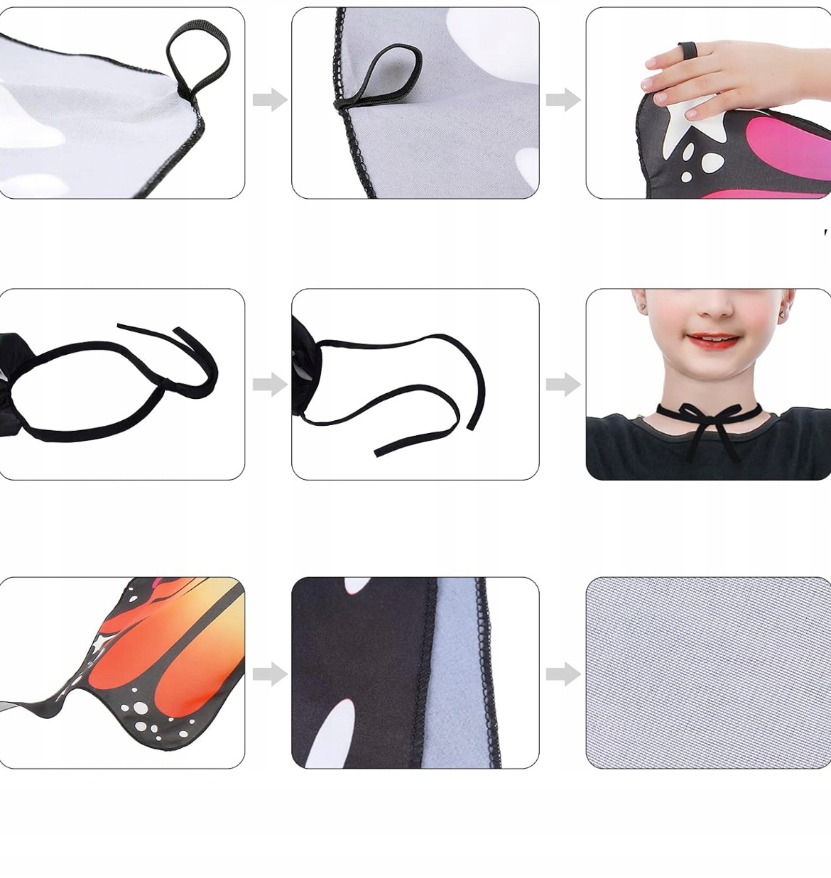 🦋Комплект легкий, удобный в ношении и подходит для детей любого возраста. Крылья легко надеть с помощью завязки на шее, а резинки на пальцах позволяют эффективно расправить крылья, что делает их устойчивыми и удобными даже при длительном ношении.
