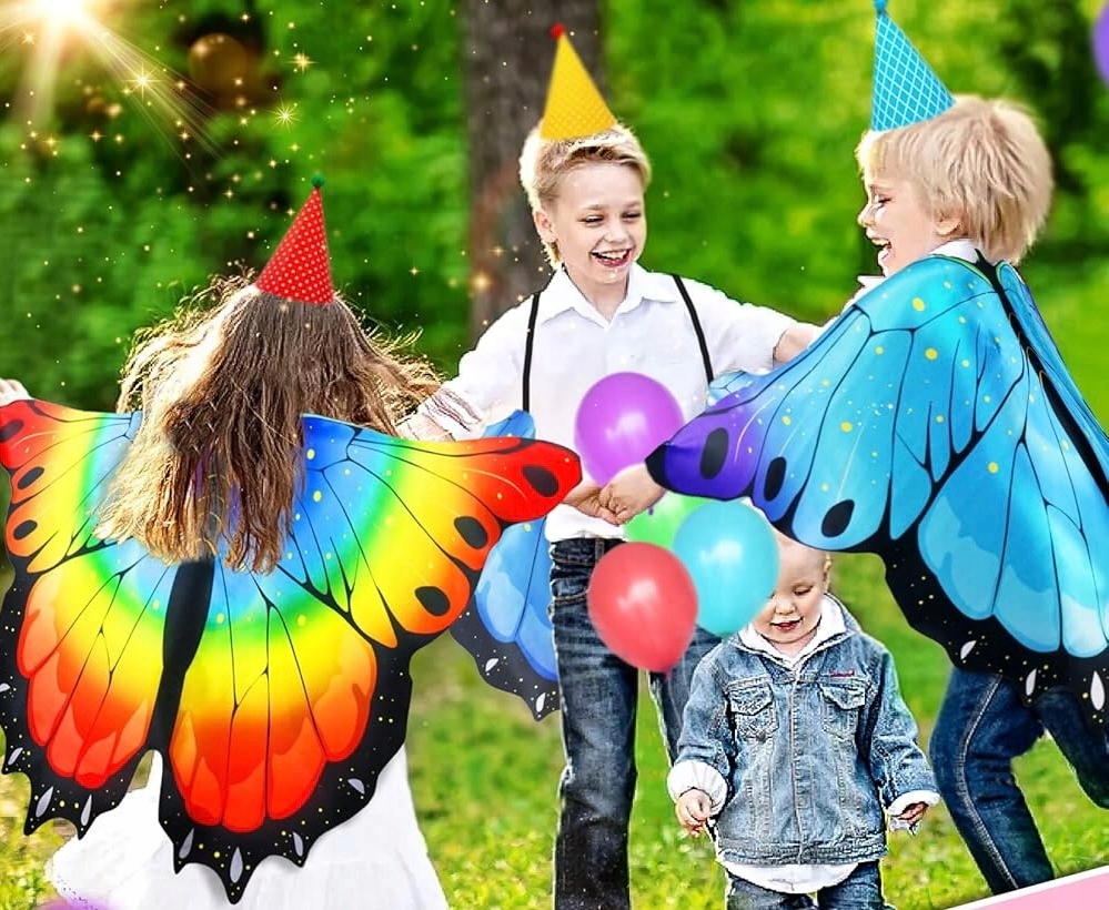 🦋 Набор легкий, удобный для ношения и подходит для детей всех возрастов. Крылья можно легко надевать с помощью привязки вокруг шеи, а резиновые ленты позволяют вам эффективно смеяться над крыльями, что делает их стабильными и удобными даже с более длинным износом.