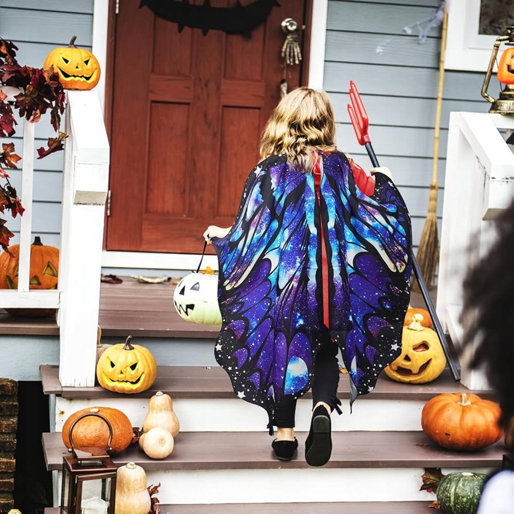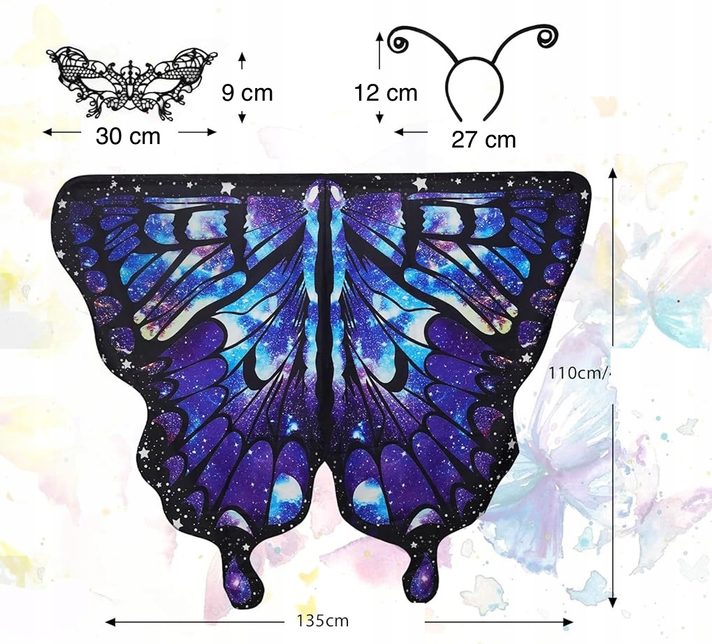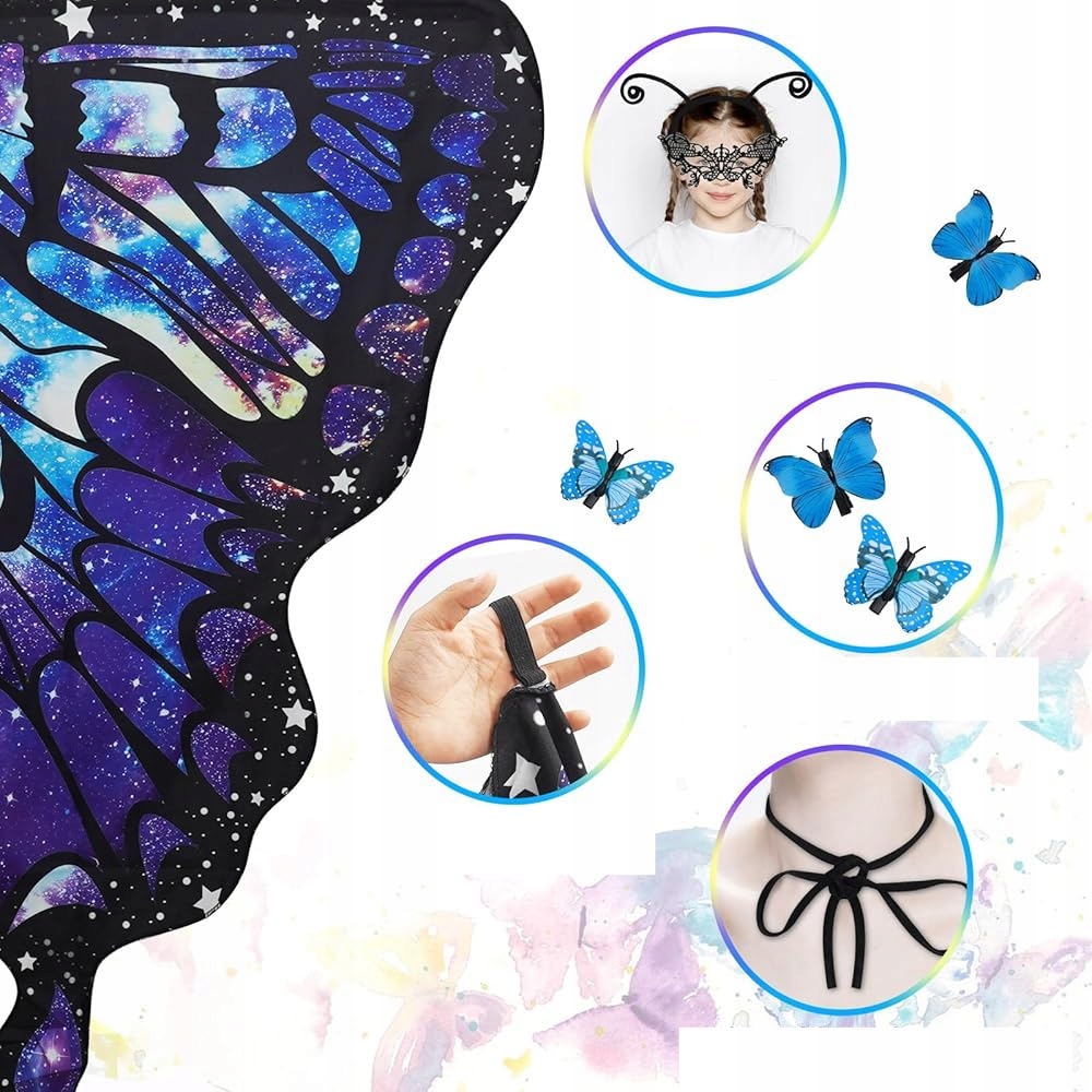 ✅ Крылья бабочки (плащ) : красиво, полные цветов крыльев в галактическом стиле, с оттенками фиолетовых, синих и звездных элементов. Кейп , связанный вокруг шеи и оснащенный упругим на концах крыльев, , который надевается на ноги, чтобы растянуть крылья и получить эффект полного импульса.