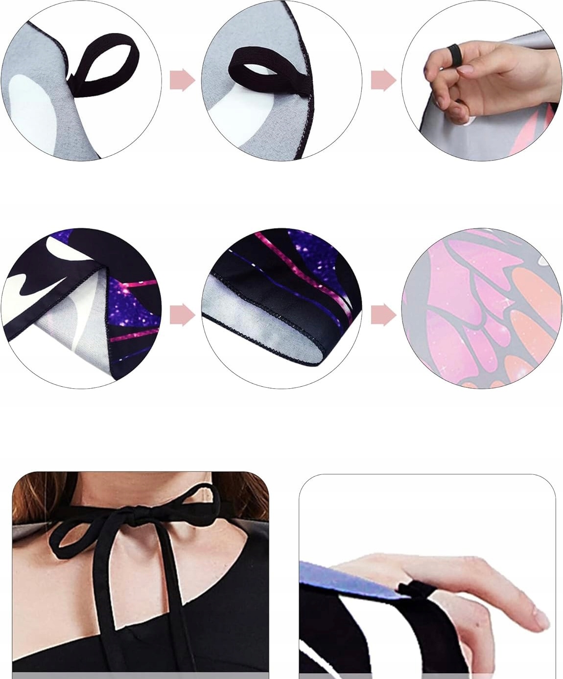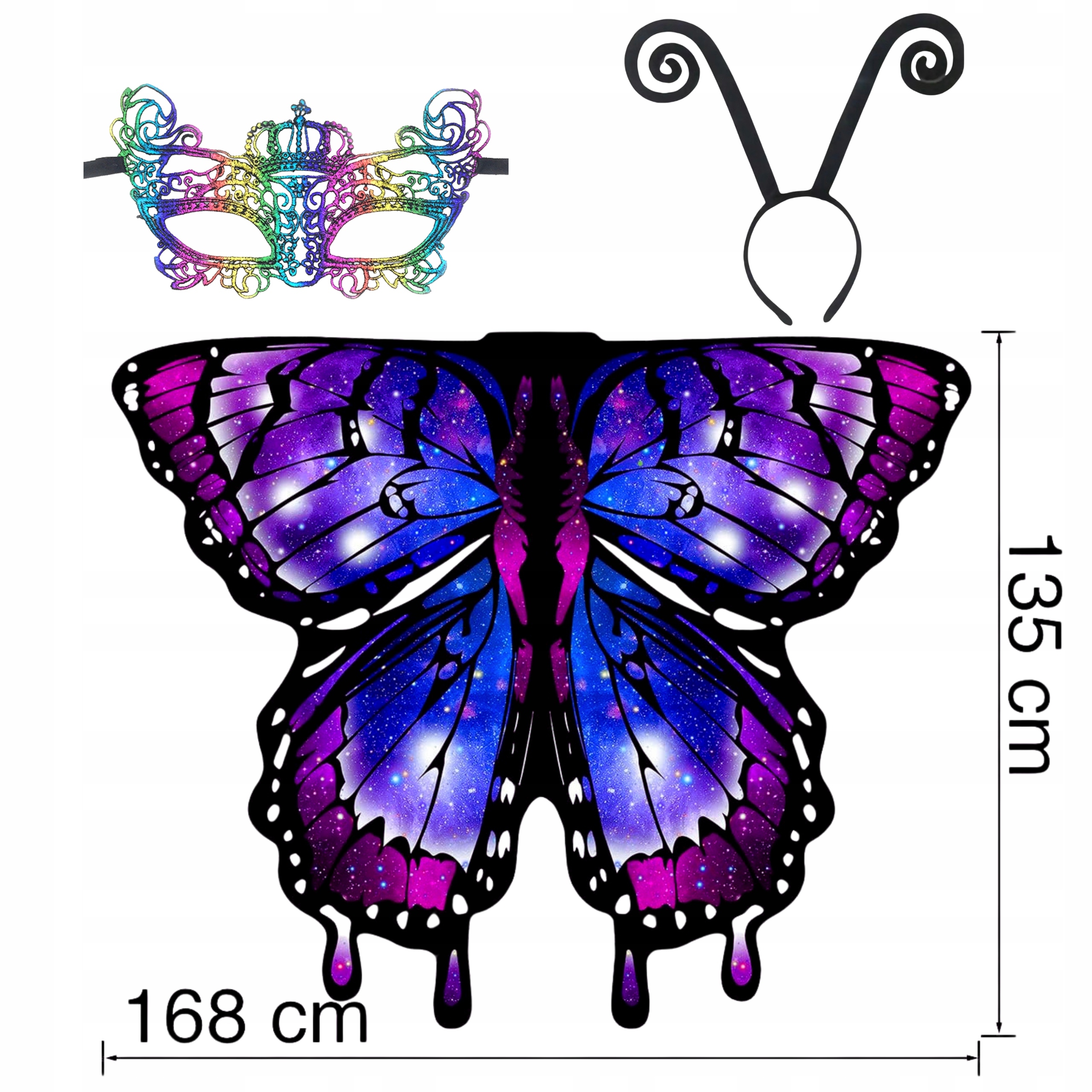 🦋🦋 Набор легкий и удобный для ношения, подходит как взрослых, так и молодежи, что делает его универсальным выбором для различных случаев. Благодаря переплете вокруг шеи и ластикам на пальцах крылья могут быть свободно распространены, что позволяет полностью использовать их красоту.