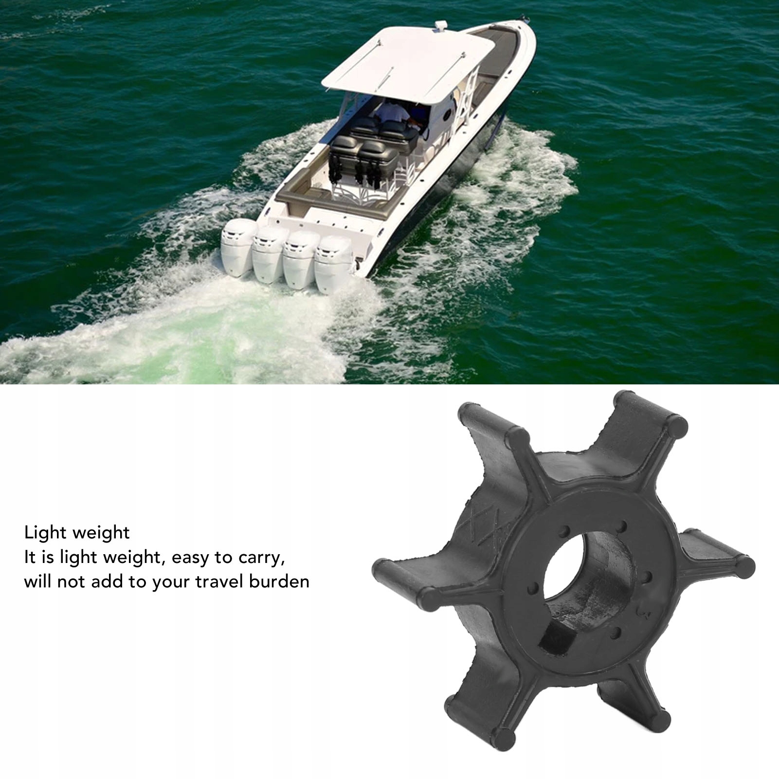 4. Большой объем подачи воды: крыльчатка этого лодочного моторного насоса обеспечивает подачу большого количества воды в подвесной мотор, что обеспечивает постоянное и стабильное охлаждение двигателя.