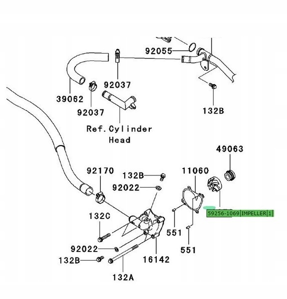 КРИЛЬЧАТКА ВОДЯНИЙ НАСОС kawasaki KVF 650 750 Brute Force