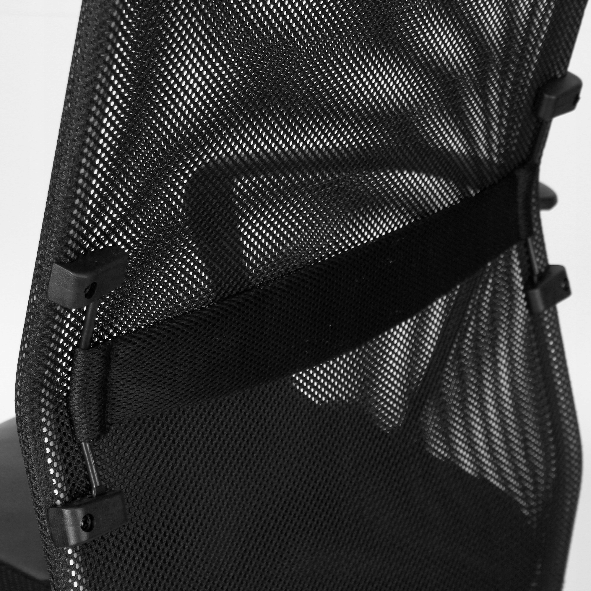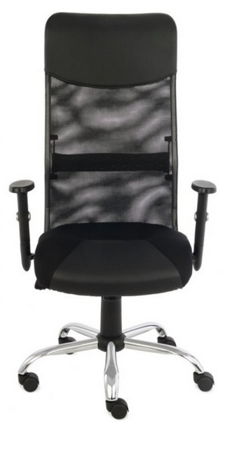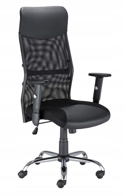 - Высокая «дышащая», спинка из профилированной сетки. с подголовником с обивкой из экокожи.