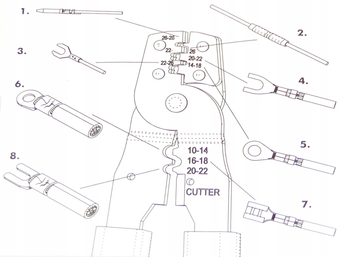 - Применение телефонных разъемов: для кабеля AWG 22-26; Изолированные разъемы: для провода AWG 22–26; Неизолированные разъемы: для провода AWG 10-22.