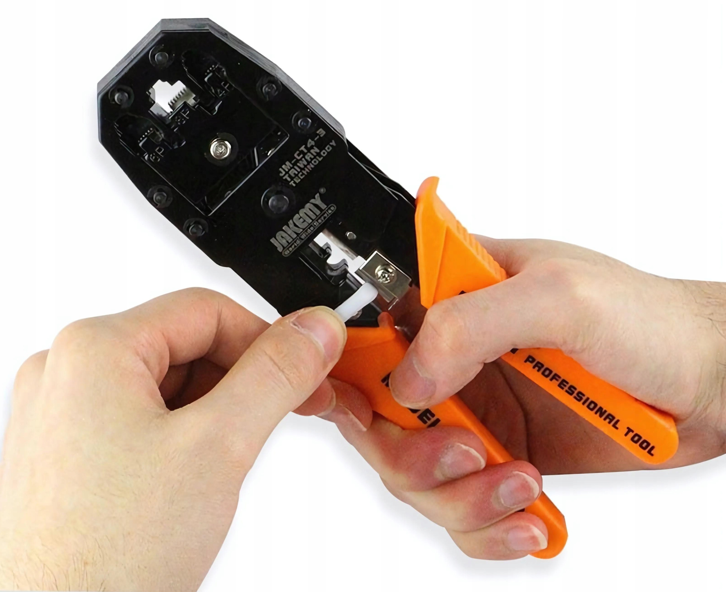 Jakemy JM-CT4-3 Профессиональный инструмент для снятия изоляции и снятия изоляции с сетевых вилок — незаменимый инструмент в мастерской каждого специалиста по установке компьютерных сетей и телекоммуникаций. Его универсальность, долговечность и дополнительные функции, такие как резак и инструмент для зачистки проводов, делают работу с кабелями быстрой и точной.