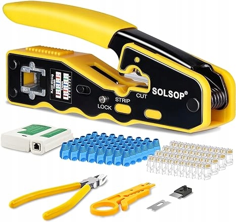 КРИМПЕР SOLSOP + ТЕСТЕР + ЩИПЦЫ + НАБОР ПРОХОДНЫХ СОЕДИНИТЕЛЕЙ