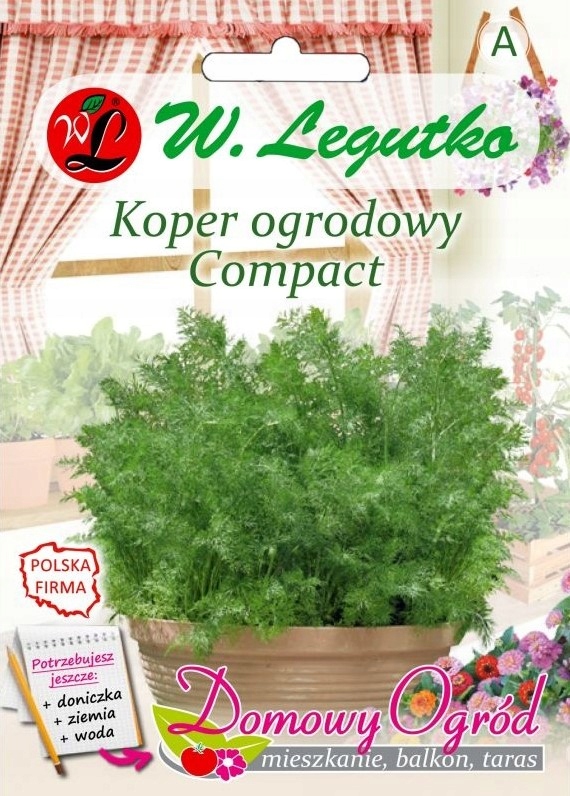 Компакт — среднеранний сорт укропа садового, рекомендуемый для горшечного выращивания в домашних условиях или на балконах и террасах, обладающий высоким потреблением и декоративной ценностью. Семена следует сеять гнездами, помещая по два семени в одну точку, прямо в емкости. Растения развиваются в виде прямостоячих, ветвистых и густооблиственных побегов, достигая высоты до 20 см в фазе сбора зелени и до 80 см в фазе цветения.