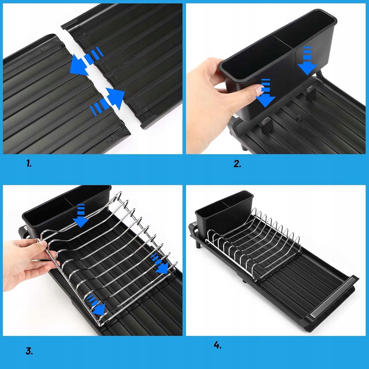 🥣🥣 ПОДГОТОВКА К ВАШИМ ПОТРЕБНОСТИ: Подставку для посуды можно легко увеличить с 28 см до 47 см в длину и до 20 см в ширину, чтобы она соответствовала вашему пространству. В сложенном виде ее можно положить в раковину.