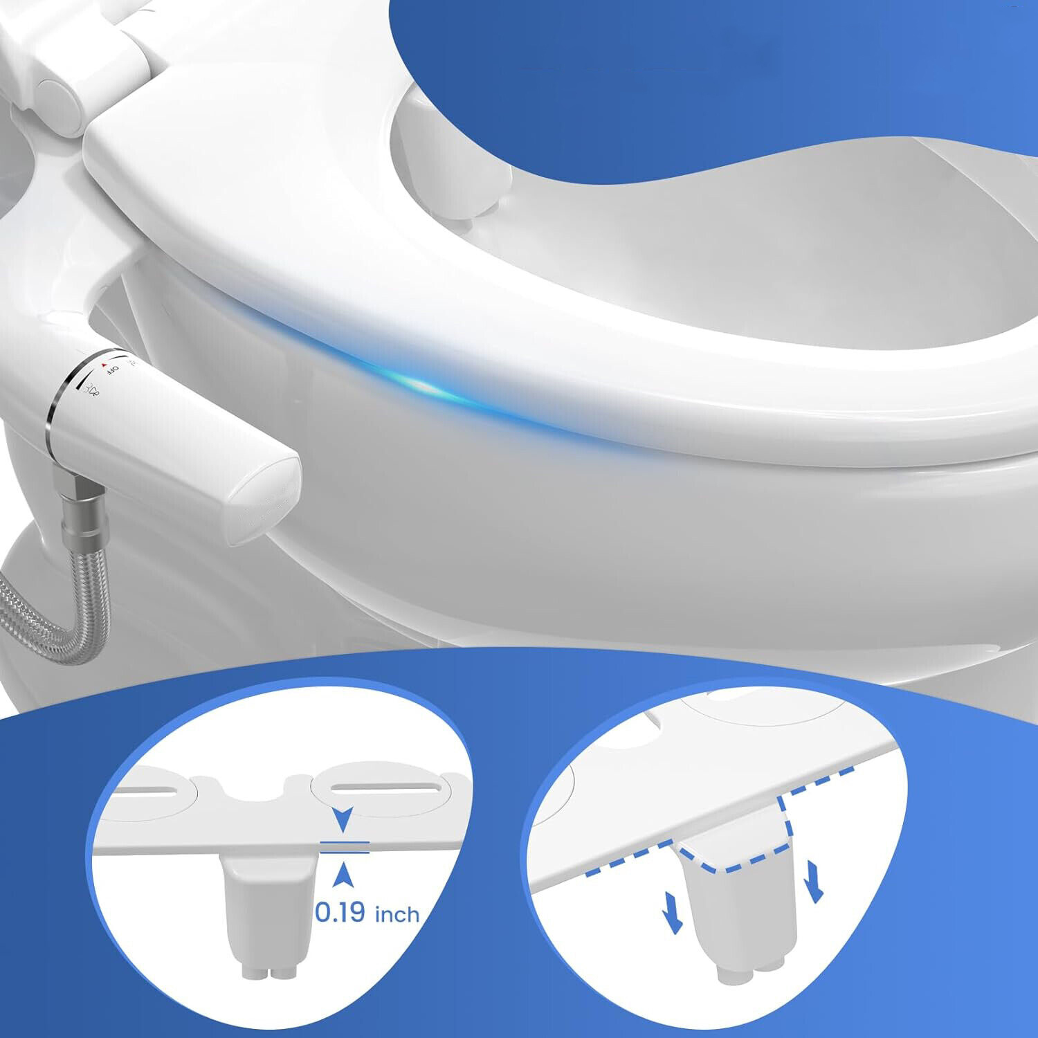 ✅ 【тонкий и длившийся】 Страмная вставка биде для туалета 0,19 -вд. Уникальный дизайн обеспечивает поддержку, поддерживает туалетную доску на уровне и более удобно подходит для стандартных туалетов. Сопло биде устанавливается под углом вверху, создавая зазор в туалетную крышку, что предотвращает повреждение сопла внешним силам.