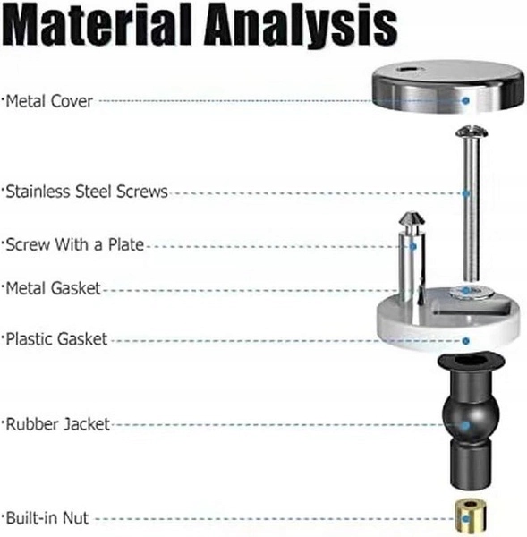 • Количество в наборе : 2 части винтов, что является стандартным количеством, необходимым для установки одного туалета. влажность.