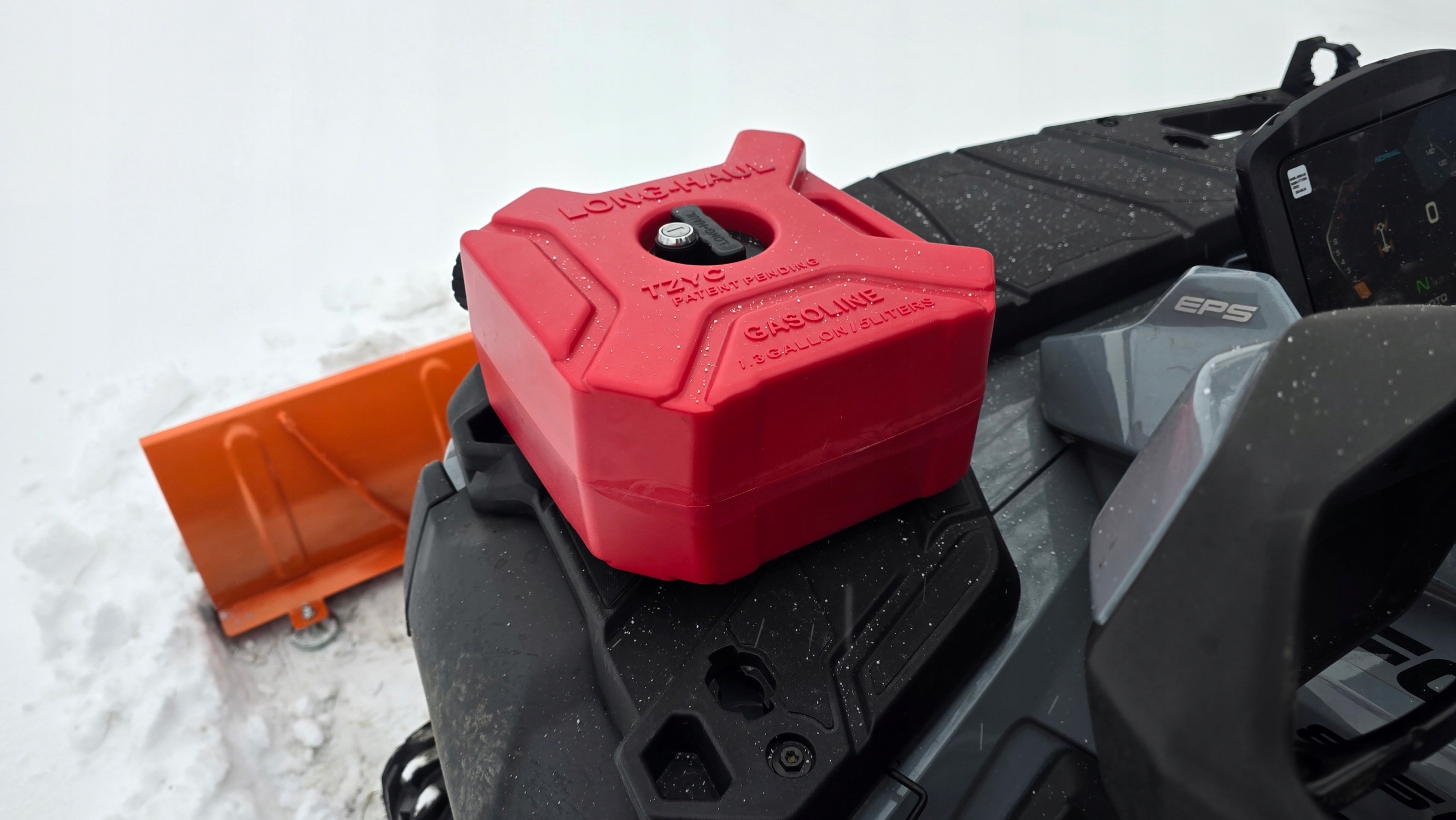 Крепление позволяет осуществлять установку без сверления и без вмешательства в конструкцию квадроцикла, что позволяет ему сохранять заводское состояние. Канистра надежно сидит и не смещается во время движения.