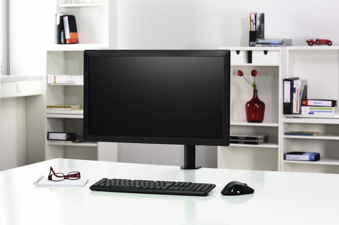 Настольный держатель позволяет прикрепить его к столешнице с помощью зажима. Этот тип держателя ориентирован в первую очередь на людей, желающих сэкономить место на столе, что поможет улучшить не только эргономику работы, но и обеспечить чистоту и безупречную эстетику на рабочем месте. компьютерная станция. p>