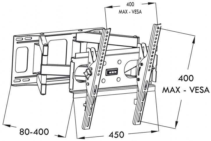 Настенный держатель для монитора ПЛАЗМА/LCD/TV 23-60" до 50кг, расстояние от стены 80 - 400мм