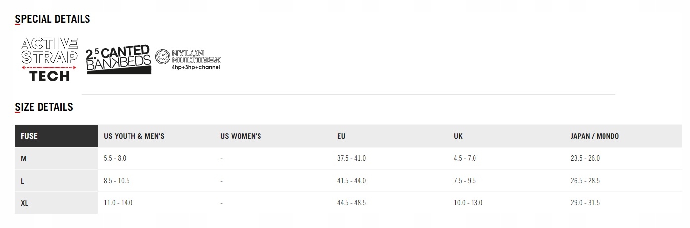 - ОСНОВАНИЕ: Нейлон со стеклонаполненным рокером, серия Asym UniBack Fuse