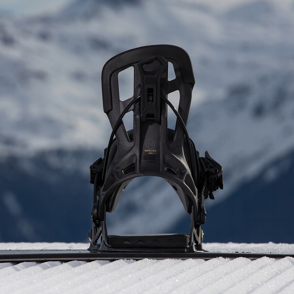 - HIGHBACK: Carbon Uniback / 30 % углеродное волокно, 70 % нейлон. Легкий цельный хайбэк, эргономичный дизайн которого повторяет контуры обуви, с широкой опорной поверхностью для большей тяги. Нейлоновый материал с добавлением карбона повышает гибкость, обеспечивая максимальную передачу мощности и контроль.