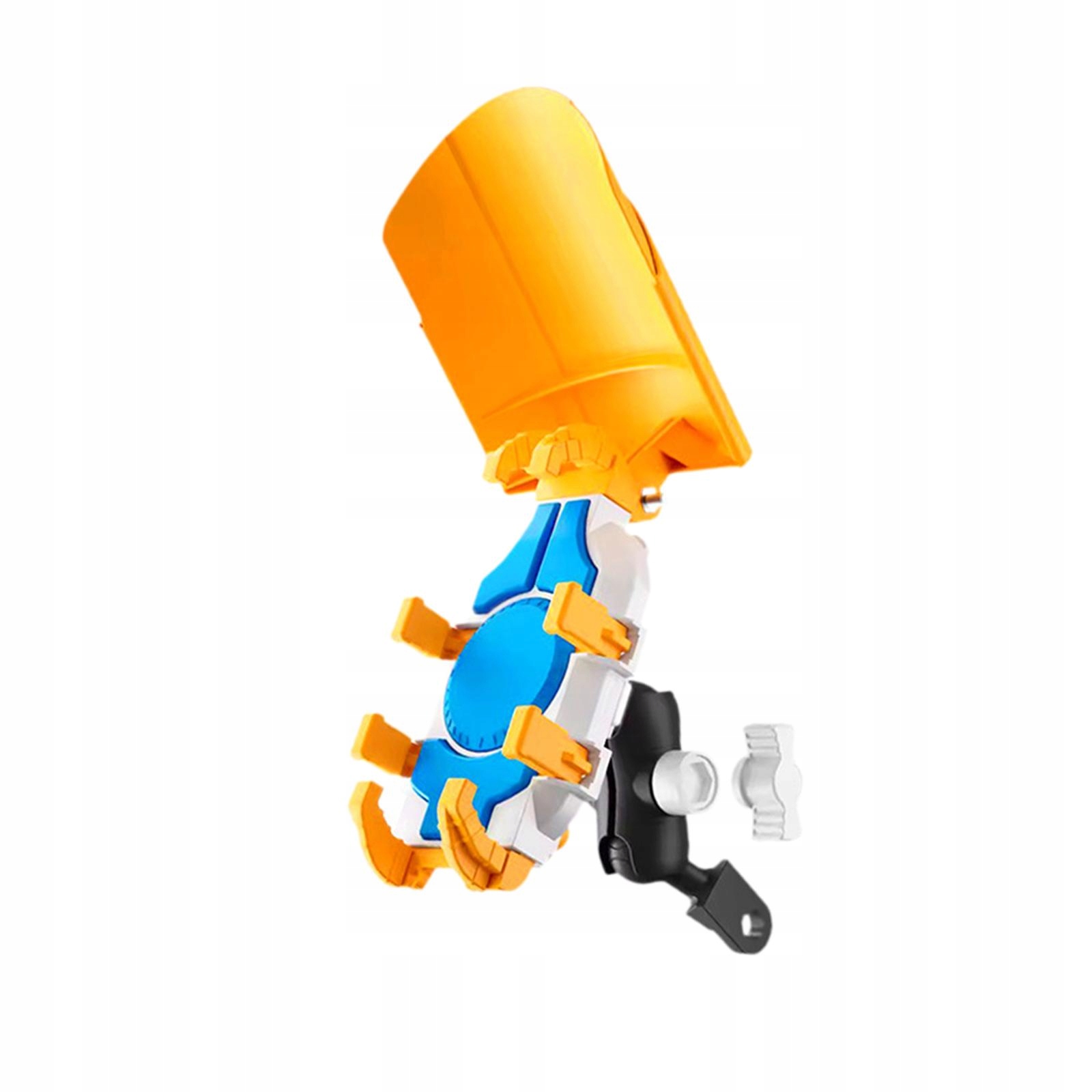 Держатель для телефона на мотоцикле. Подставка для мобильного телефона. Универсальный зажим для смартфона. Желтый, с обратной стороны.