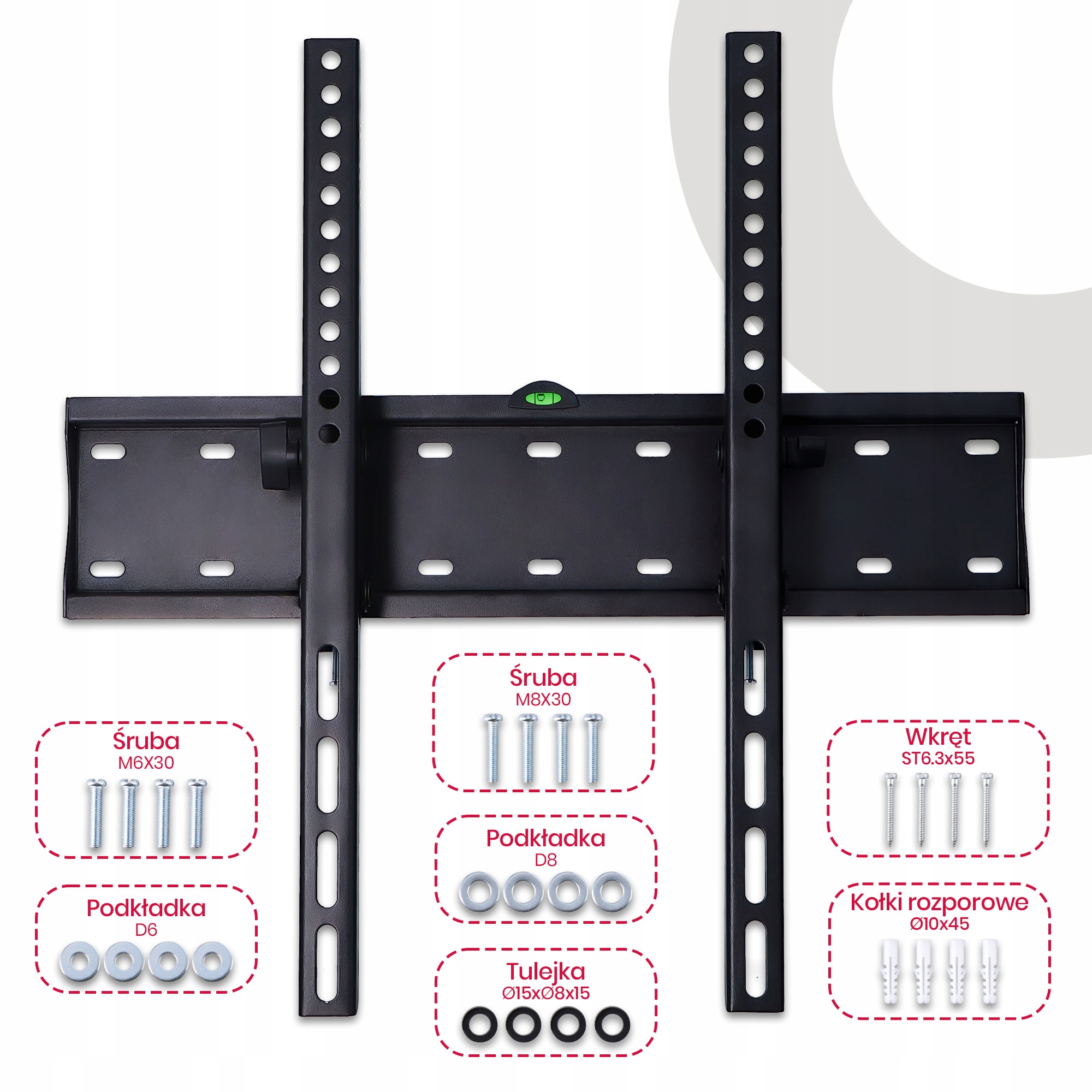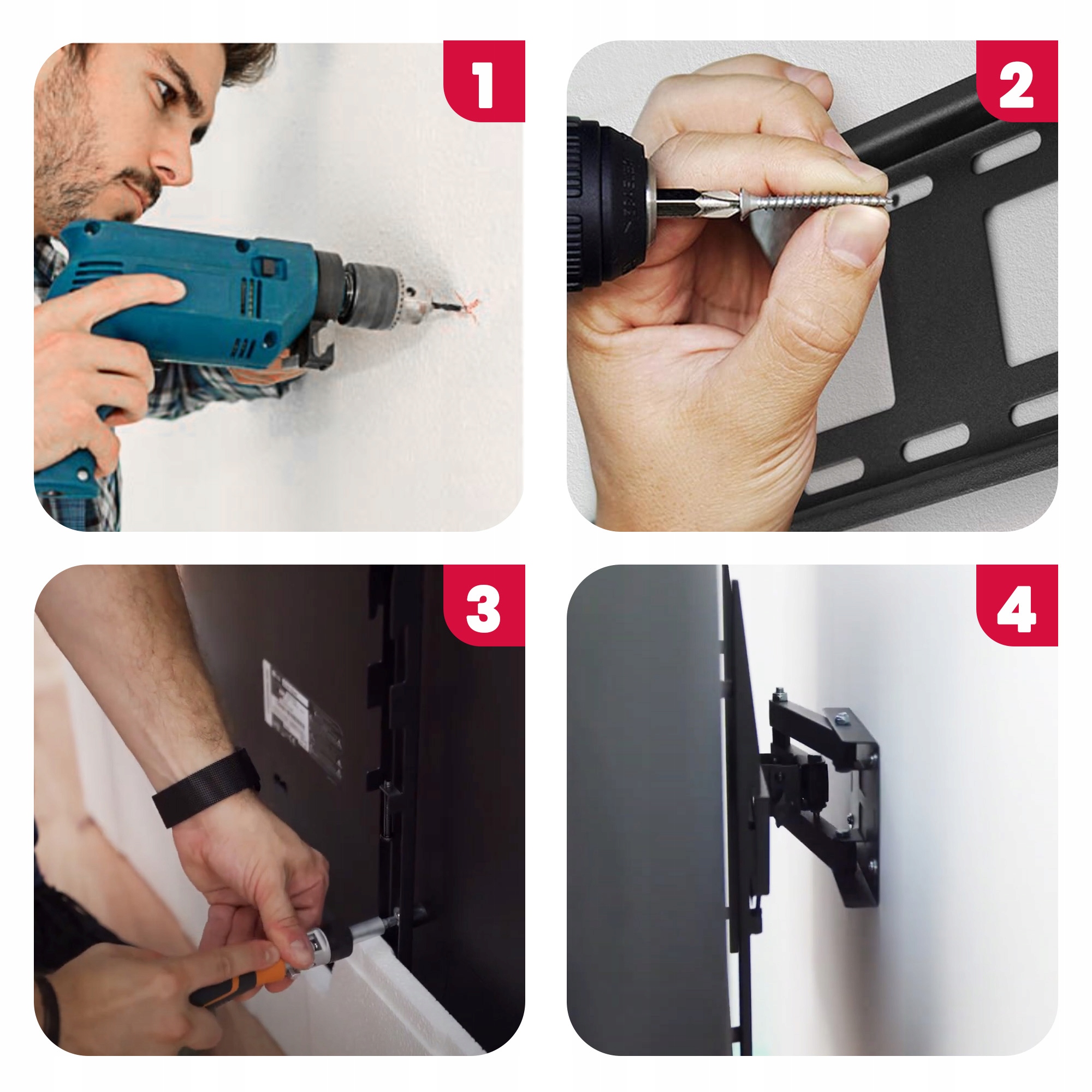 Монтажные аксессуары, включенные в набор, позволяют устанавливать не только ручку стен, но и телевизор ручки, не покупая дополнительные винты или винты. Благодаря этому вы уверены, что каждый элемент будет соответствовать вашему телевизору.