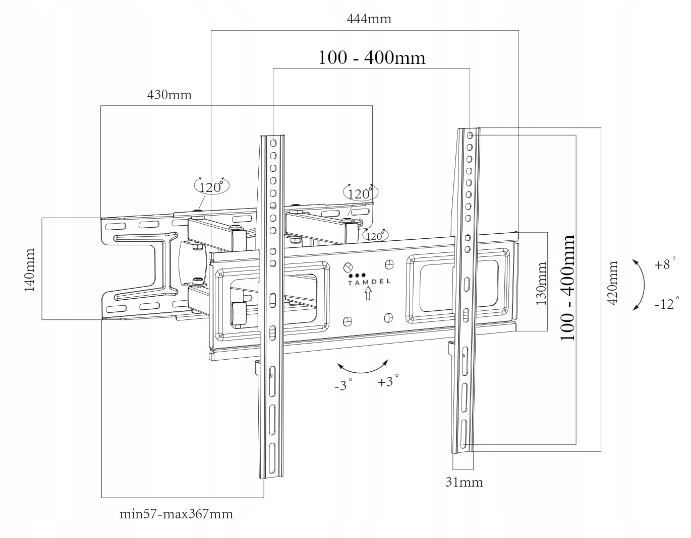 - ➡️ Полностью регулируемый – регулировка наклона до 20°, вращение 120° и расстояние от стены от 57 до 367 мм - для максимальной свободы в расположении экрана.
