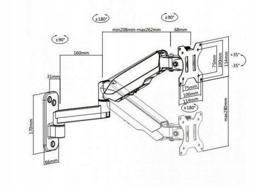 - Настенное крепление для телевизора LED/LCD с пневматической пружиной, позволяет для легкого изменения положения дисплея без использования инструментов.