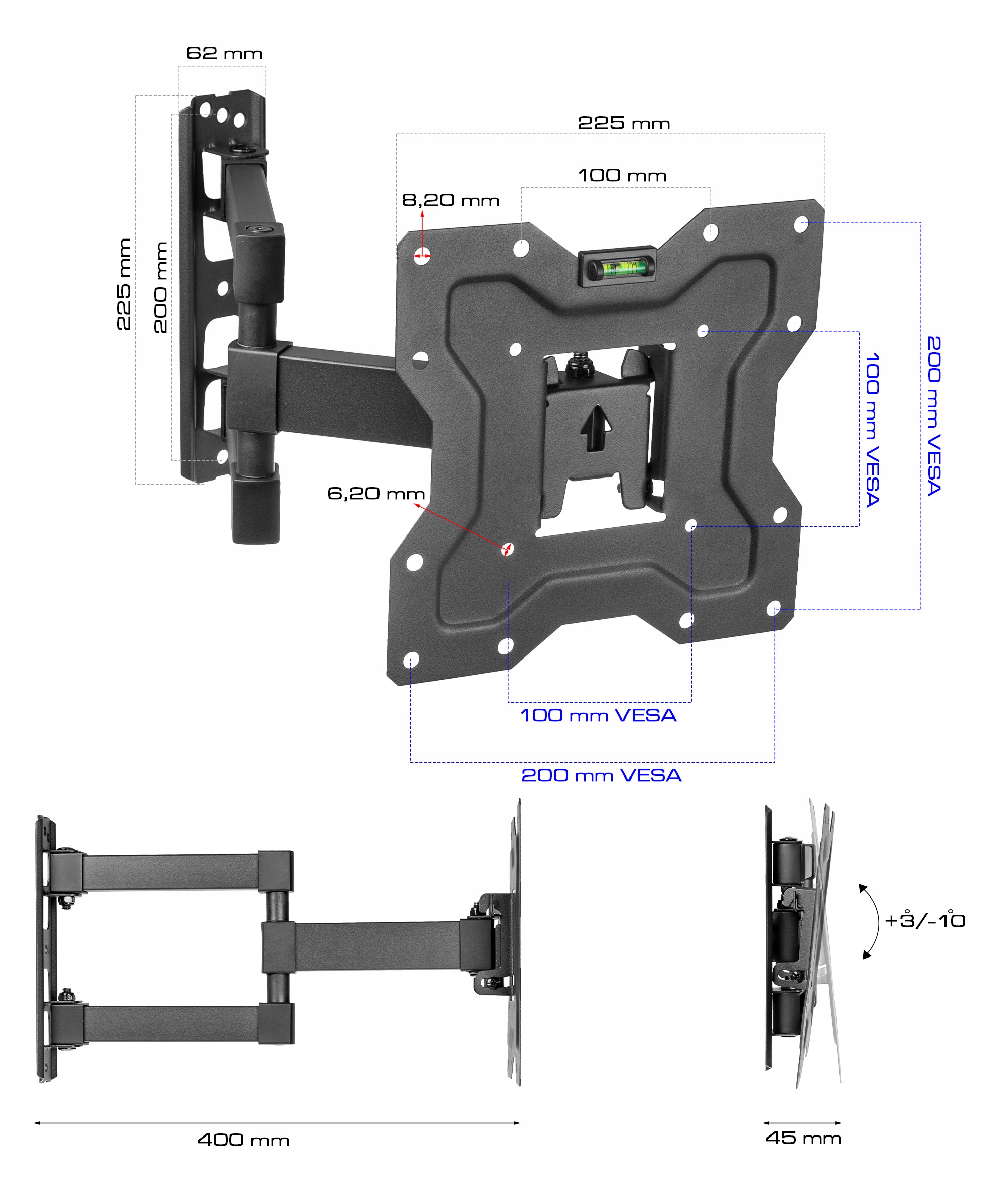 ПОВОРОТНЫЙ КРОНШТЕЙН ДЛЯ ЖК-ТЕЛЕВИЗОРА ПОДВЕСКА ДЛЯ ТВ 15-48