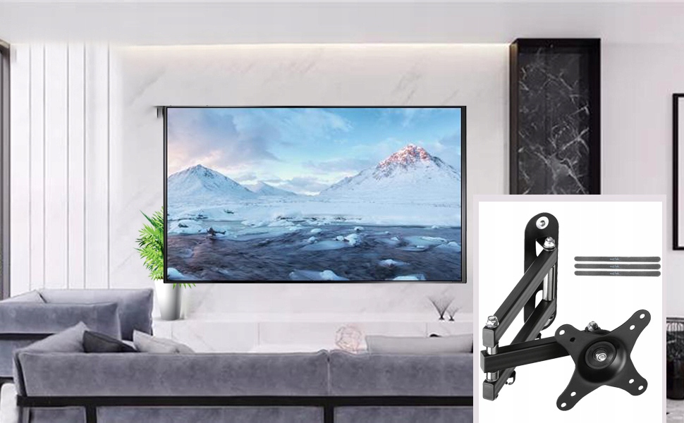 - 📐 Благодаря тонкому дизайну вы экономите место – экран находится всего в 57 мм от стены, а при необходимости его можно плавно выдвинуть до 400 мм.
