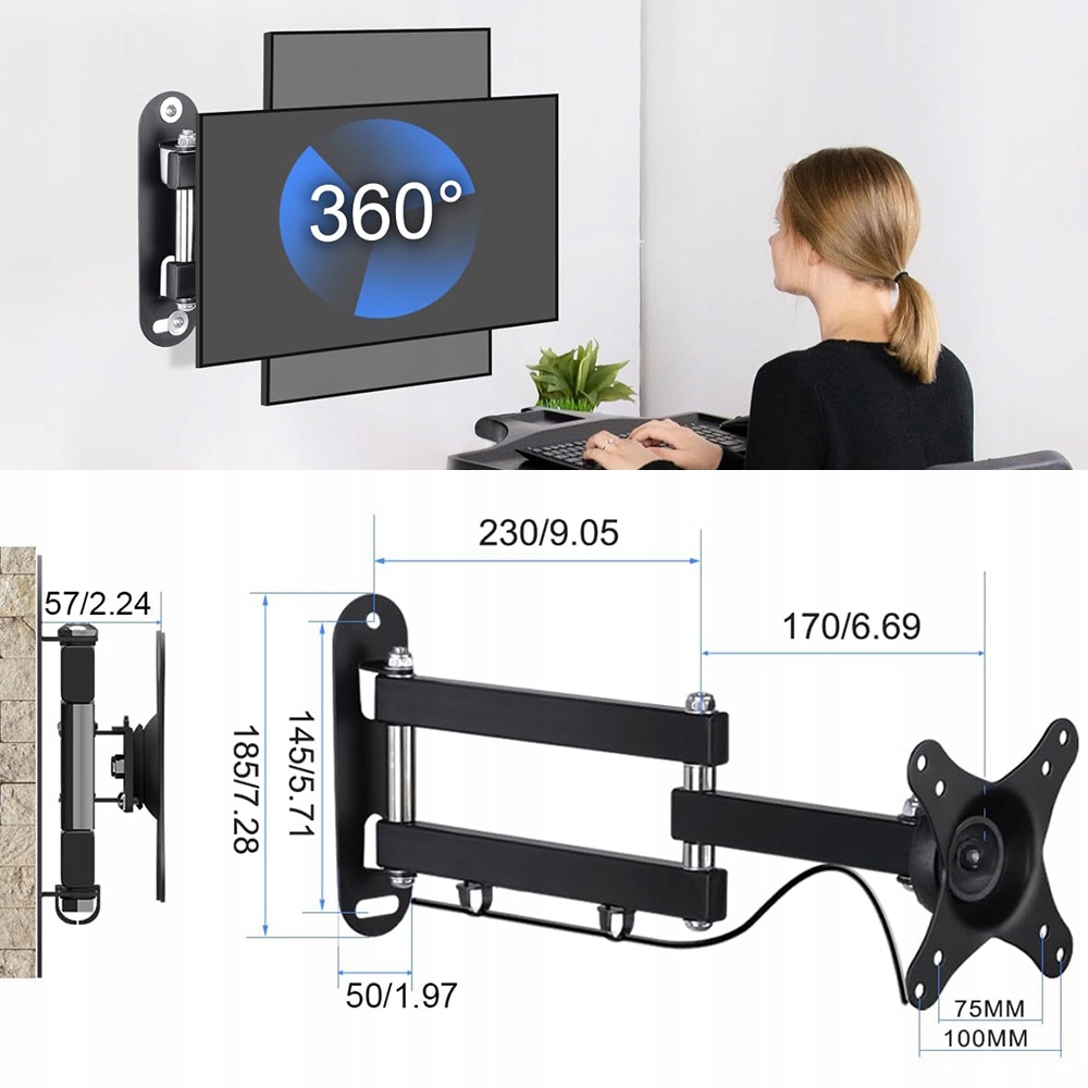 КРЕПЛЕНИЕ ДЛЯ ТВ-МОНИТОРА НА НАСТЕНУ 15 32 ДЮЙМА VESA 75 100 ПОВОРОТНОЕ