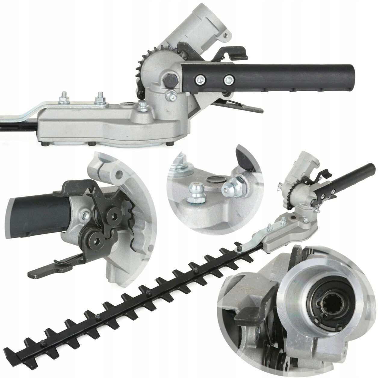 Ножницы для живой изгороди\Насадка для бензинового кустореза позволяет легко и быстро переоборудовать бензиновый триммер в стойку. хедж-триммер. Устройство идеально подходит для обрезки высоких живых изгородей и декоративных деревьев. Насадка оснащена плавной регулировкой угла ножниц.
