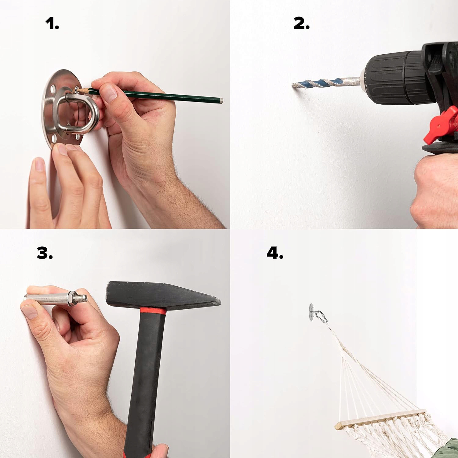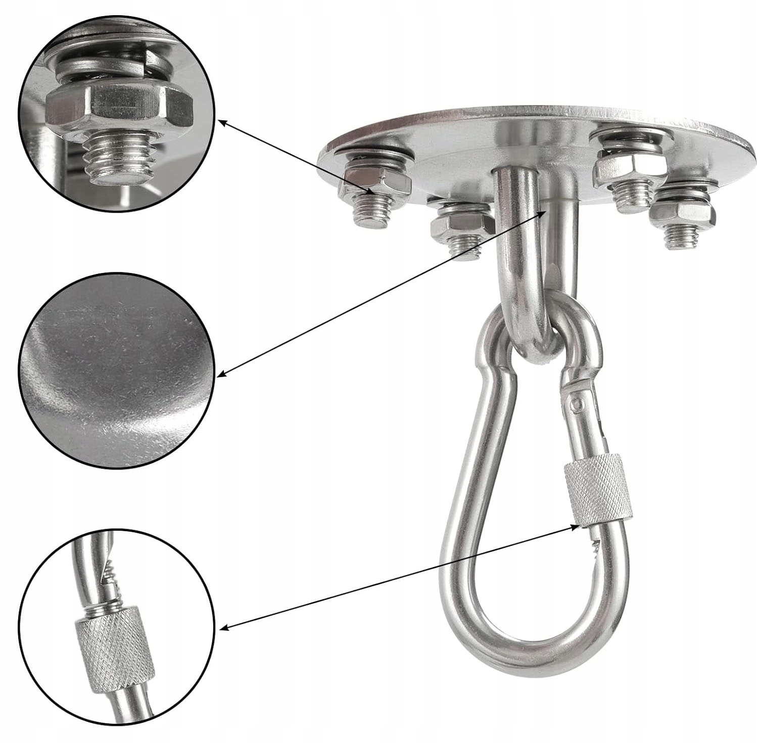 Крючок подходит для использования в помещении и на открытом воздухе, для подвешивания гамаков, качелей, стульев, мешков с песком, люстр, тренажеров для рогаток, йоги, маркиза и т. д. .